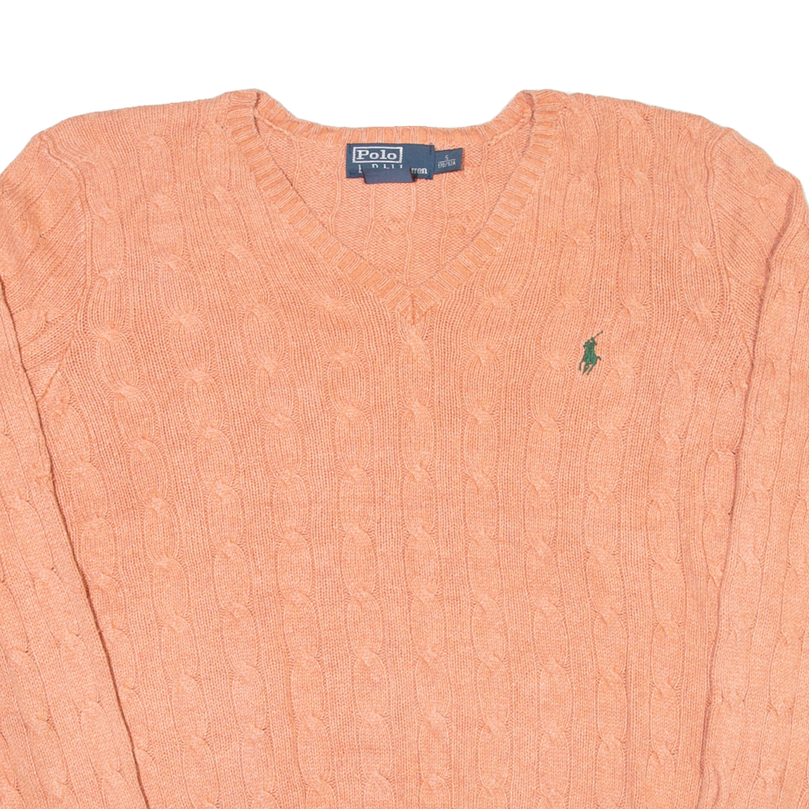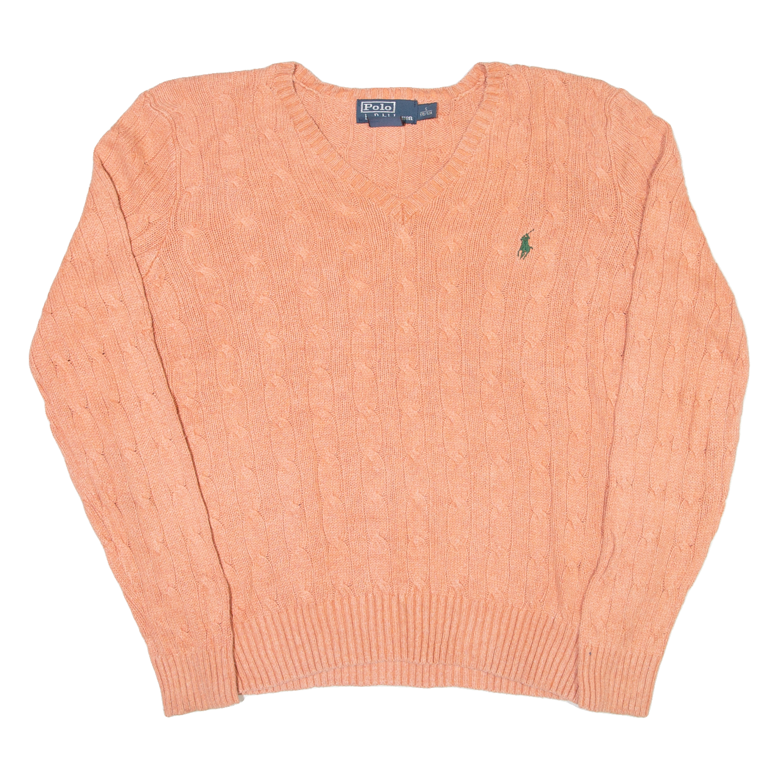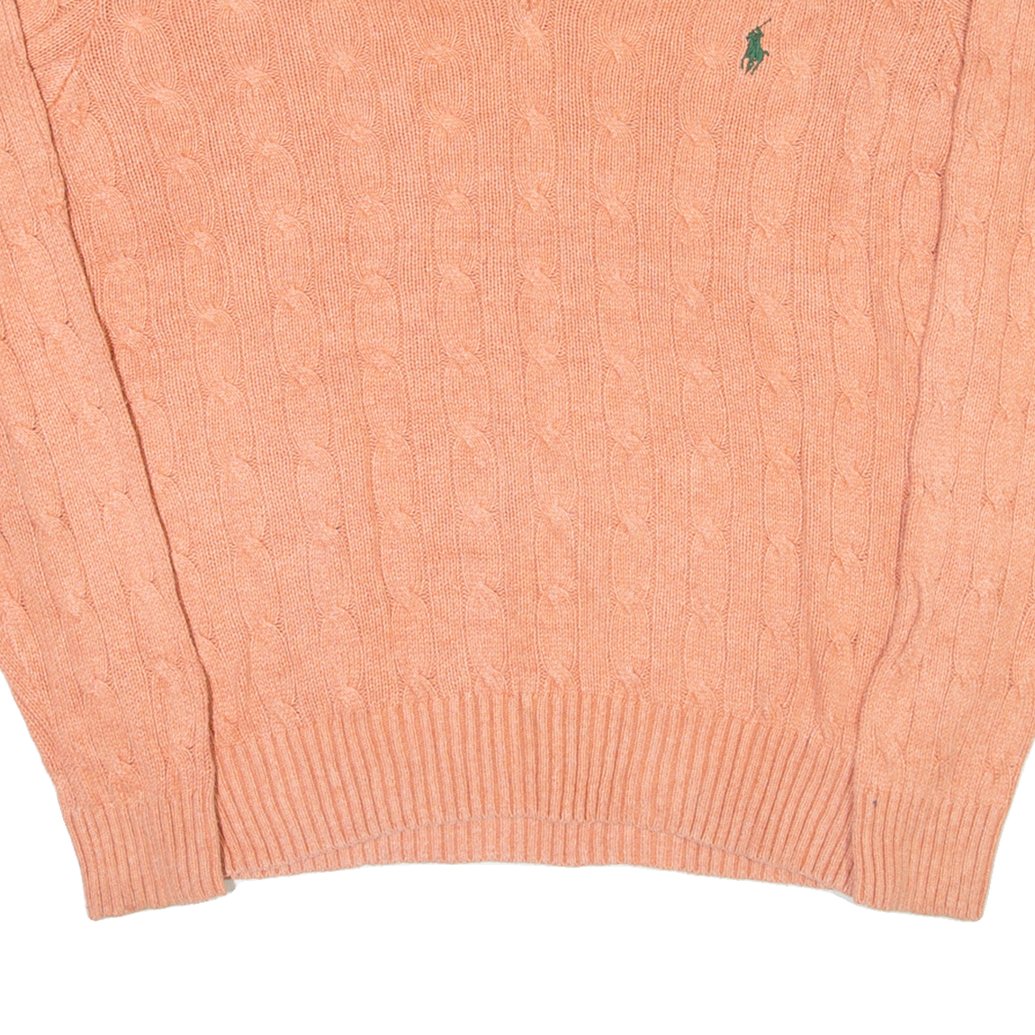 POLO RALPH LAUREN Mens Jumper Pink V-Neck Cable Knit Silk S