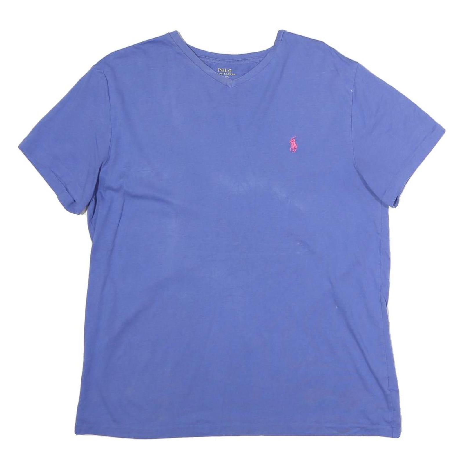 POLO RALPH LAUREN Womens Blue V-Neck Cotton T-Shirt M Short Sleeve Pink Logo