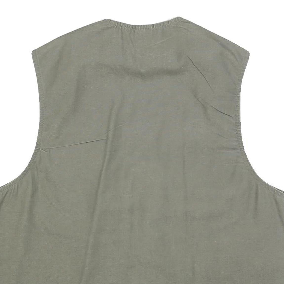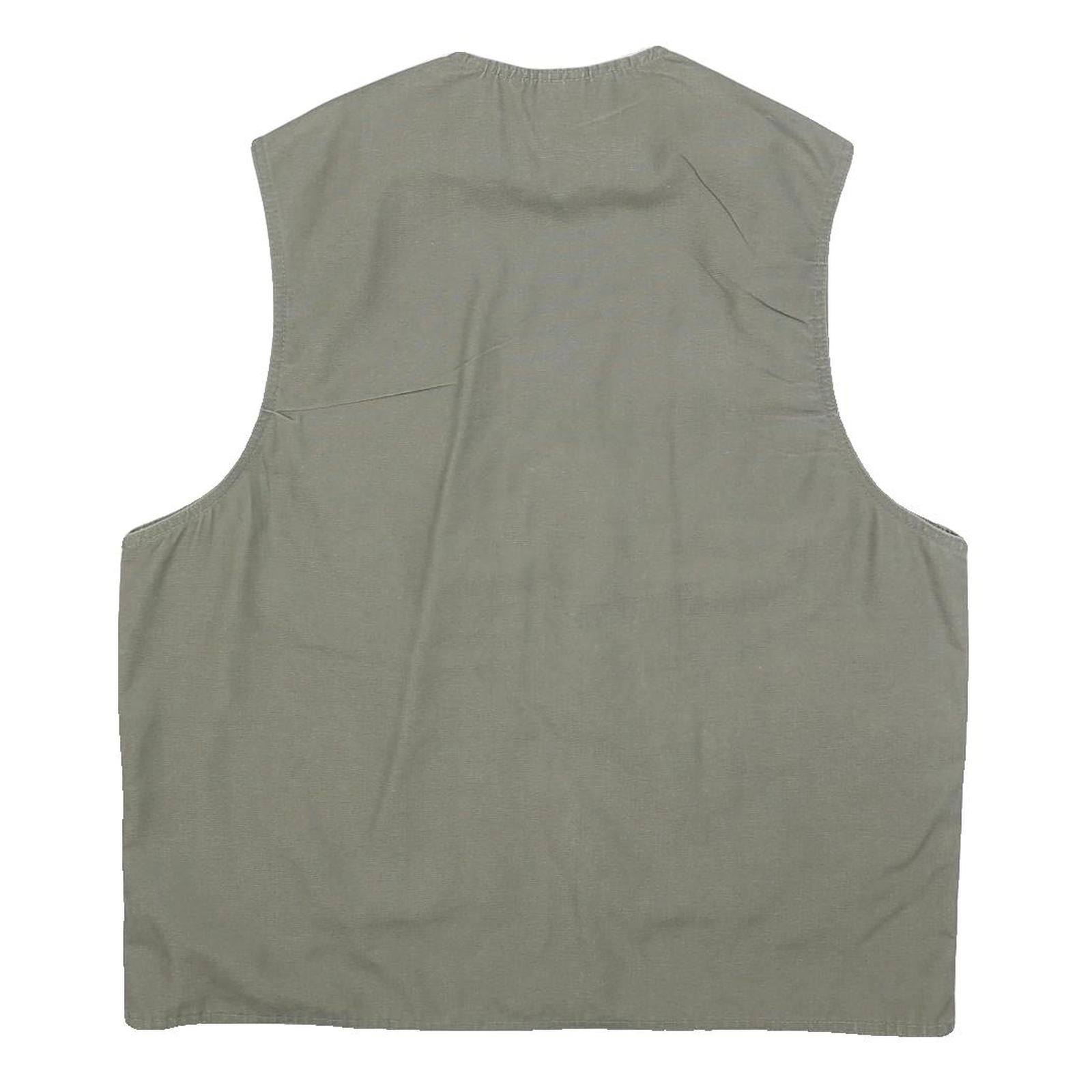 This PRIMO & SECONDO mens jacket features a muted green colour crafted from a cotton blend fabric, offering a comfortable and breathable wear. It has a simple, sleeveless design with multiple front pockets, including zipped and flap styles, ideal for carrying essentials securely.