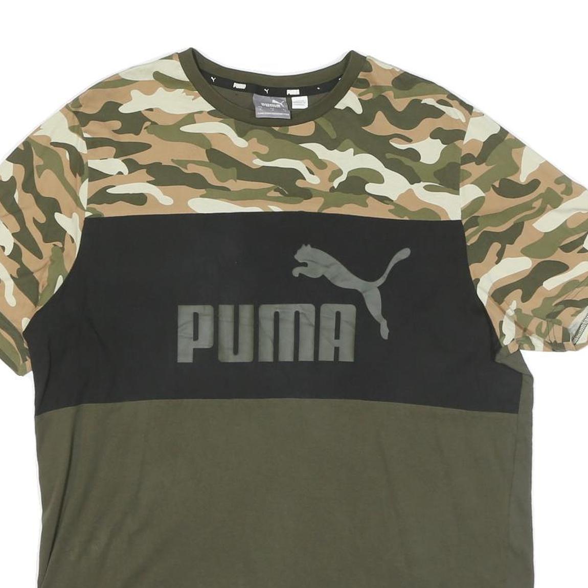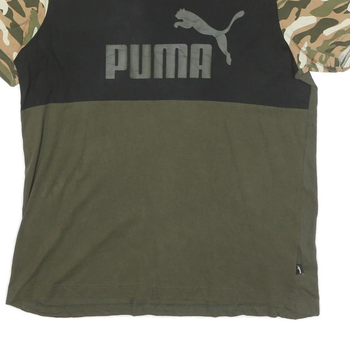 PUMA Mens Green & Camouflage Graphic T-Shirt L Short Sleeve Crew Neck Cotton