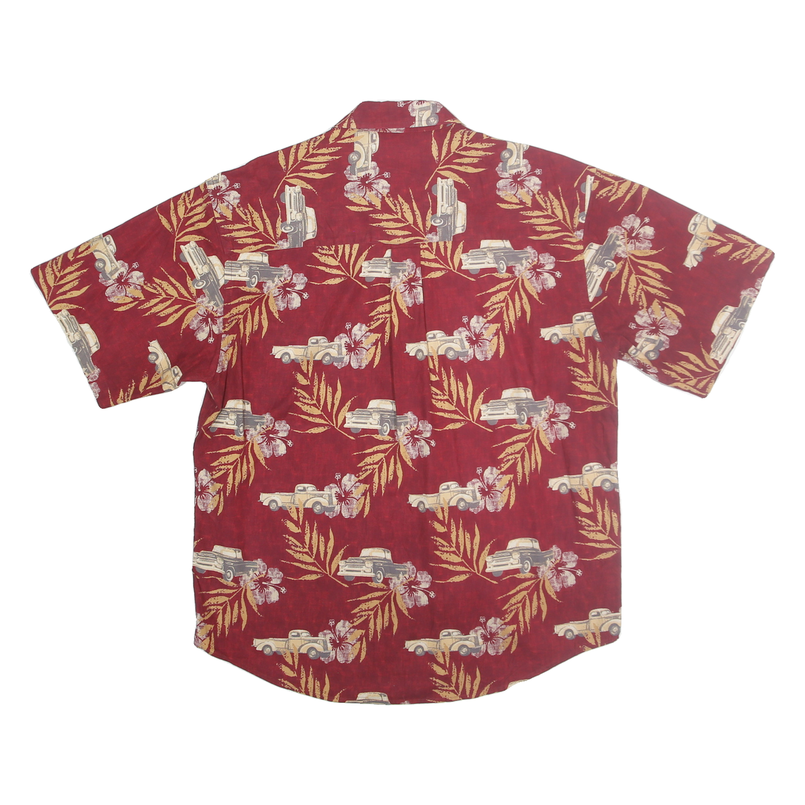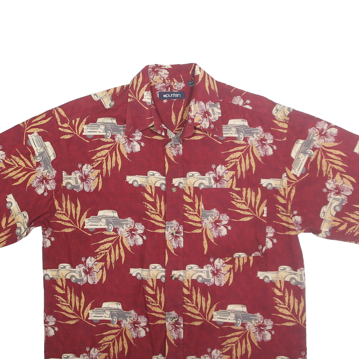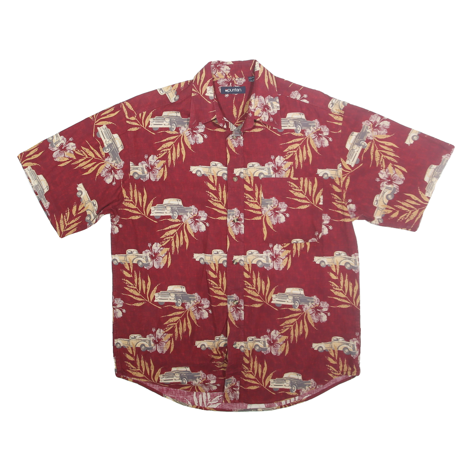 PURITAN Mens Red Cotton Hawaiian Shirt M Vintage Floral Car Pattern Casual