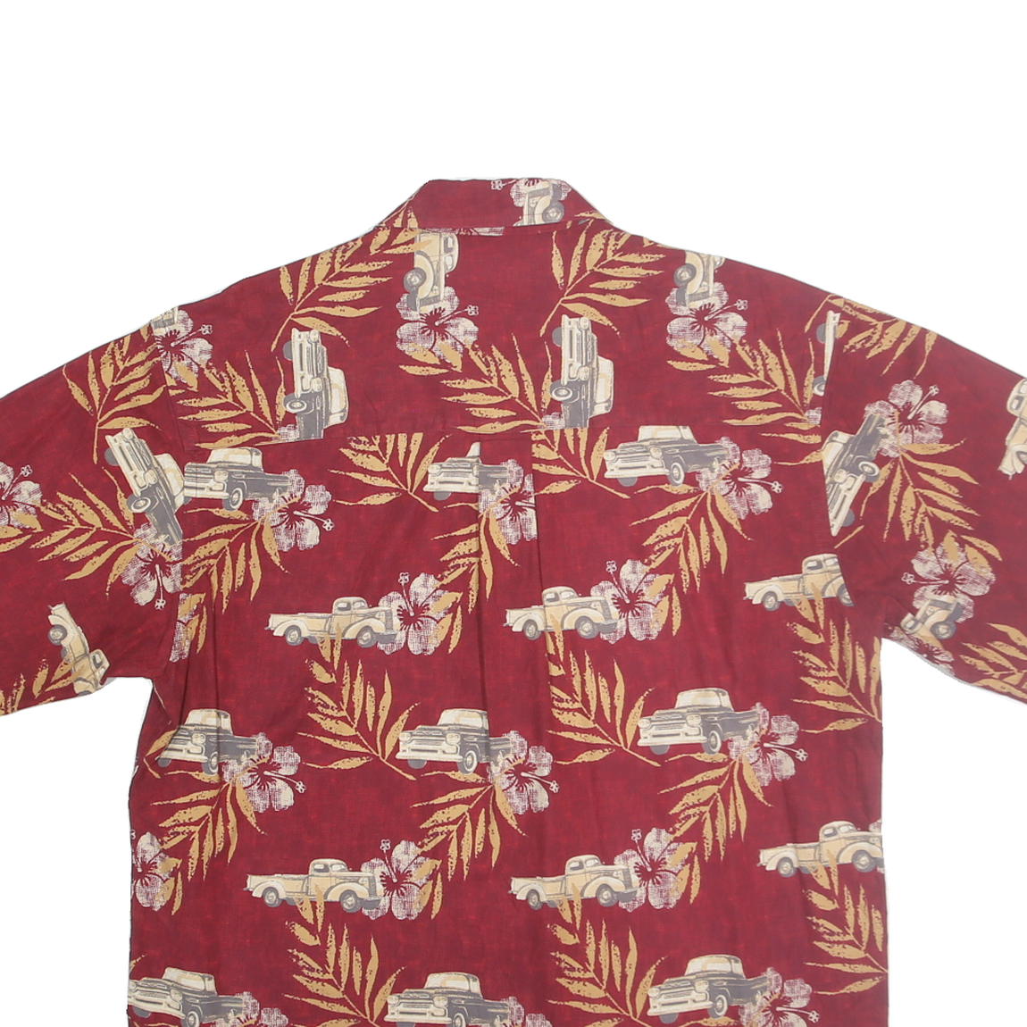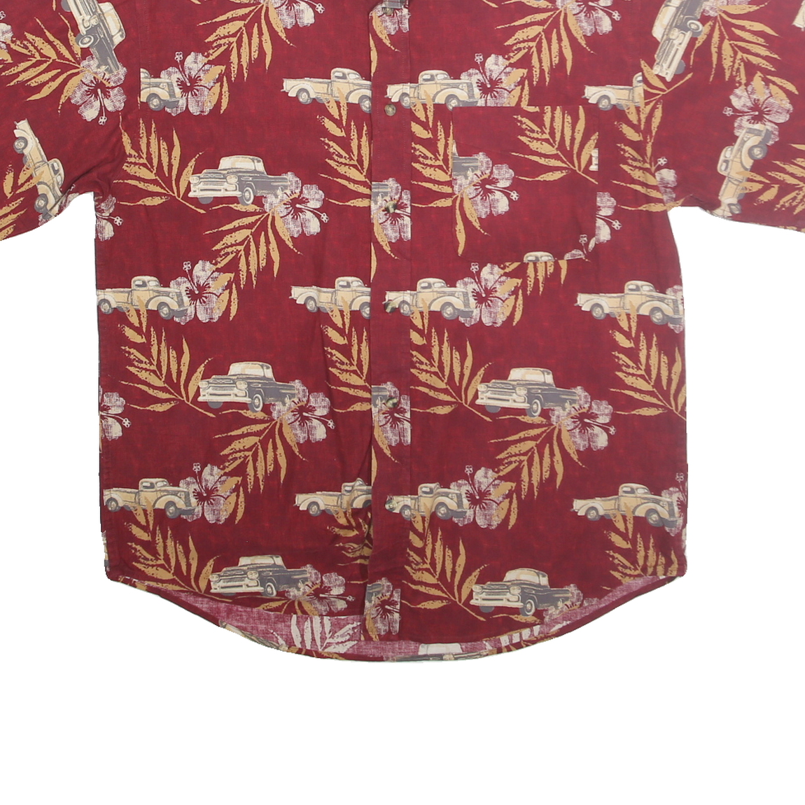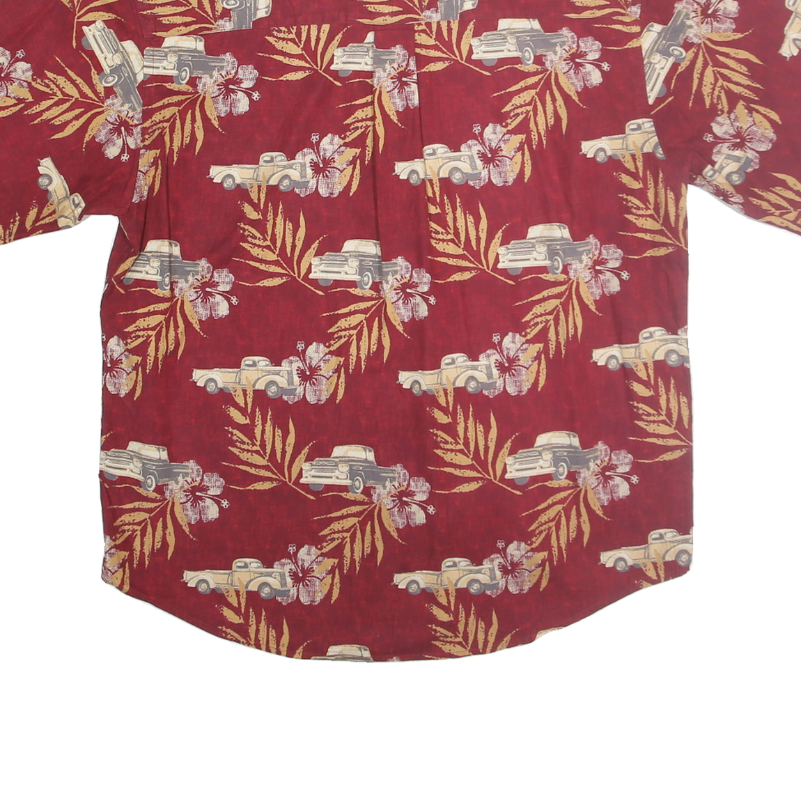 PURITAN Mens Red Cotton Hawaiian Shirt M Vintage Floral Car Pattern Casual