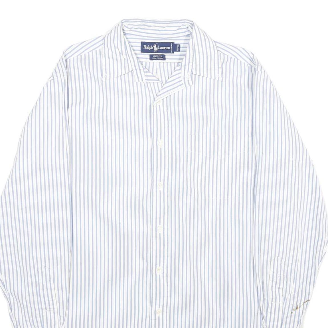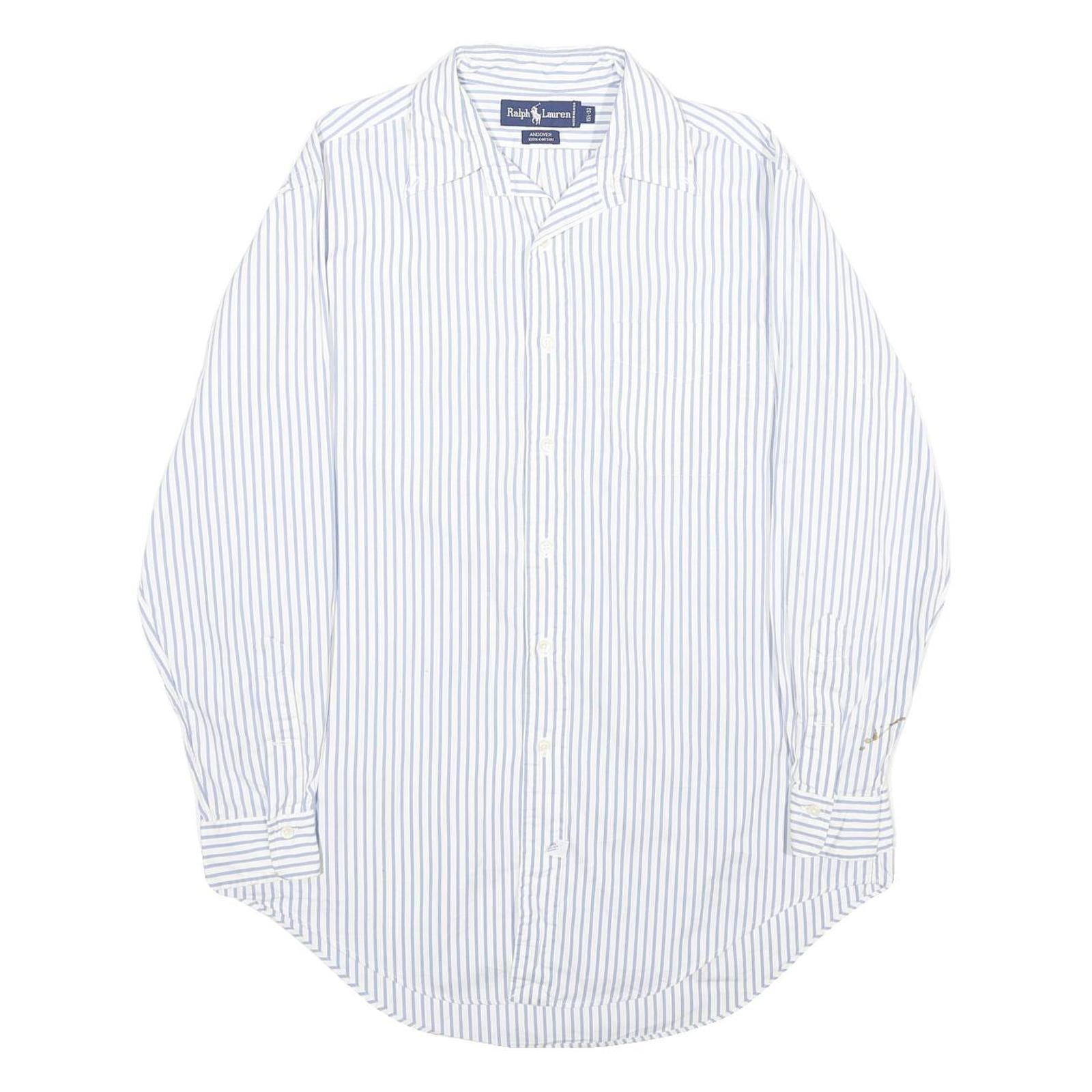 RALPH LAUREN Mens White & Blue Striped Cotton Shirt M Classic Button Down Long