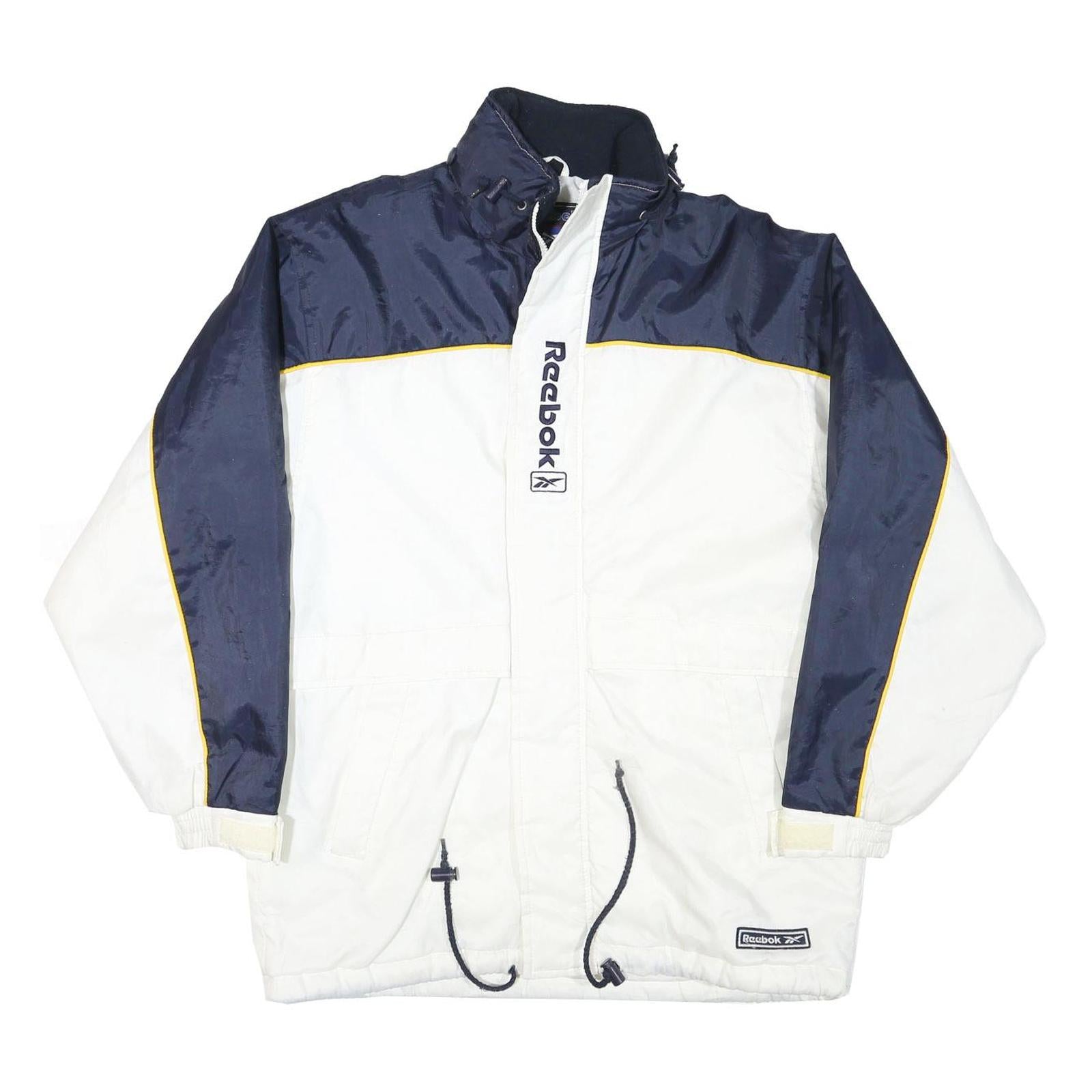 REEBOK Mens White & Navy Blue Zip Jacket S Polyester Blend Sportswear Casual
