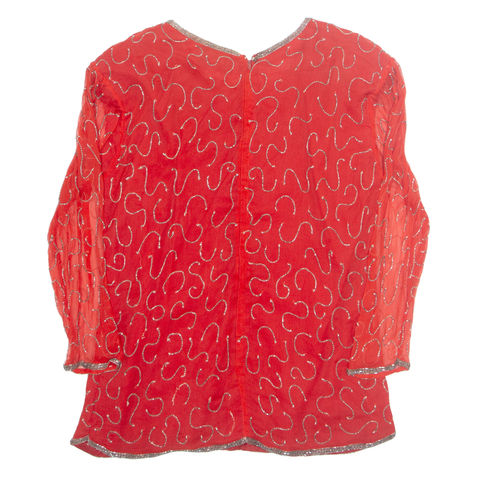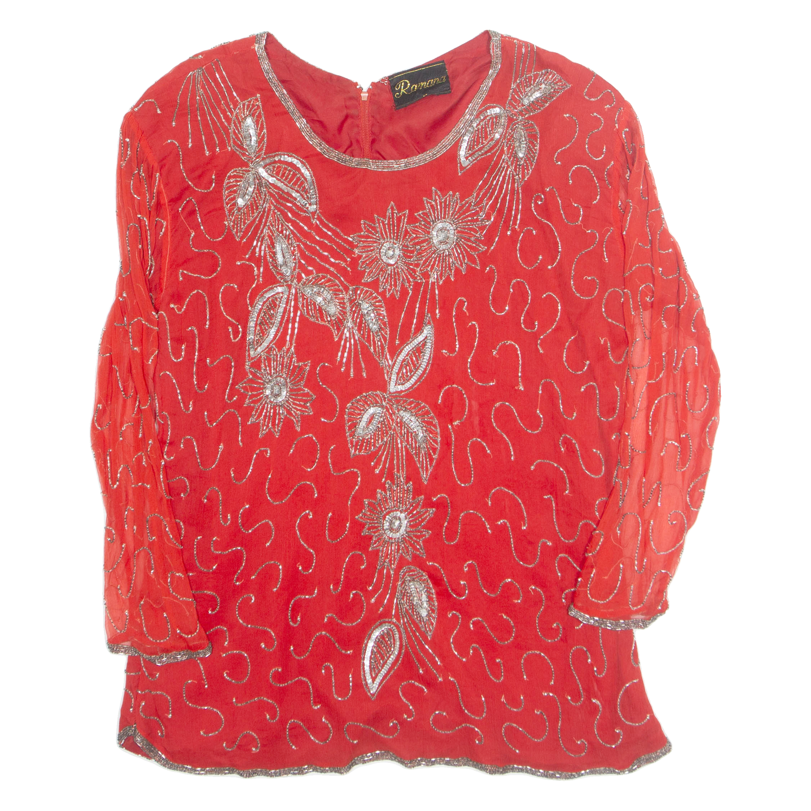 REMANA Womens Printed Blouse Red Long Sleeve Faux Silk S