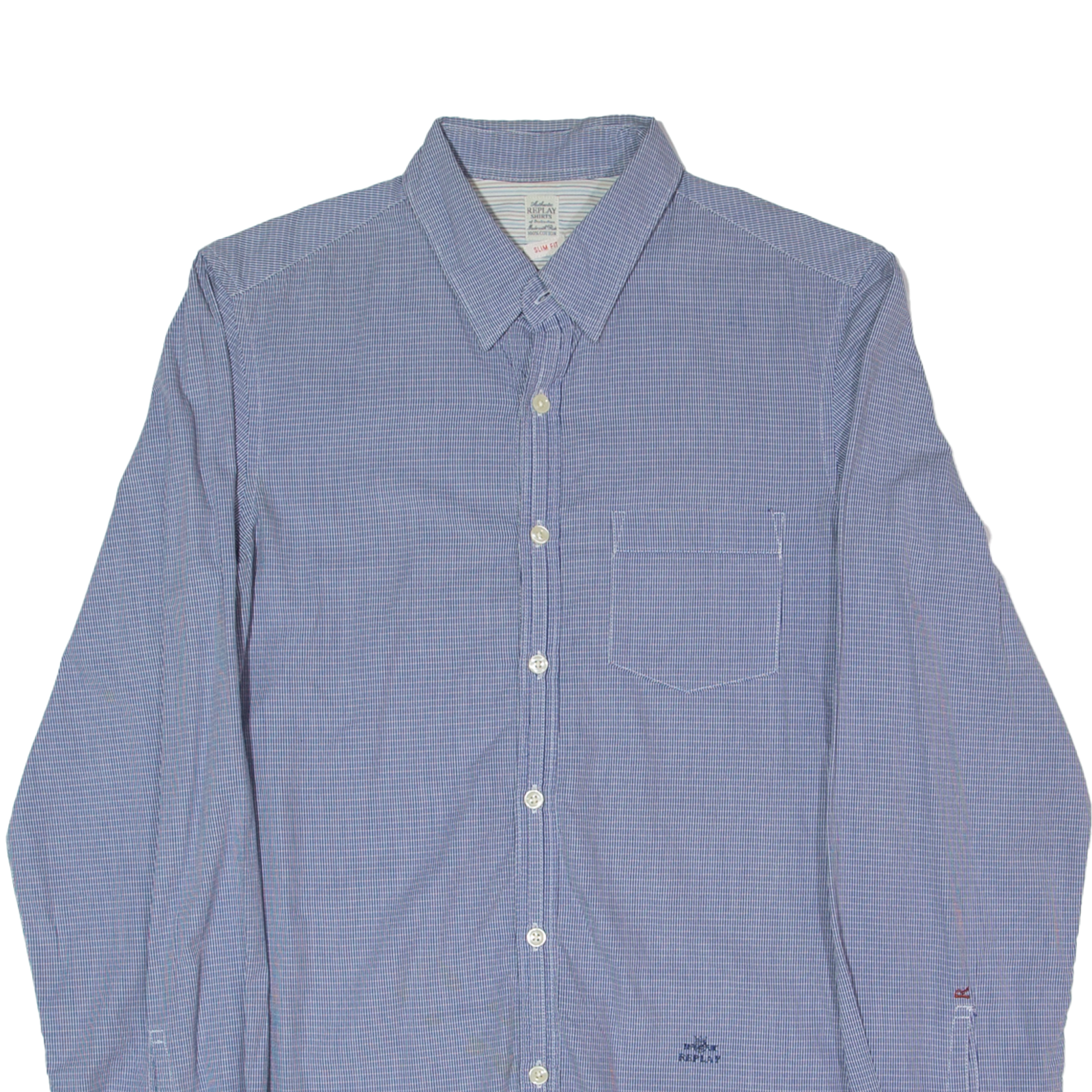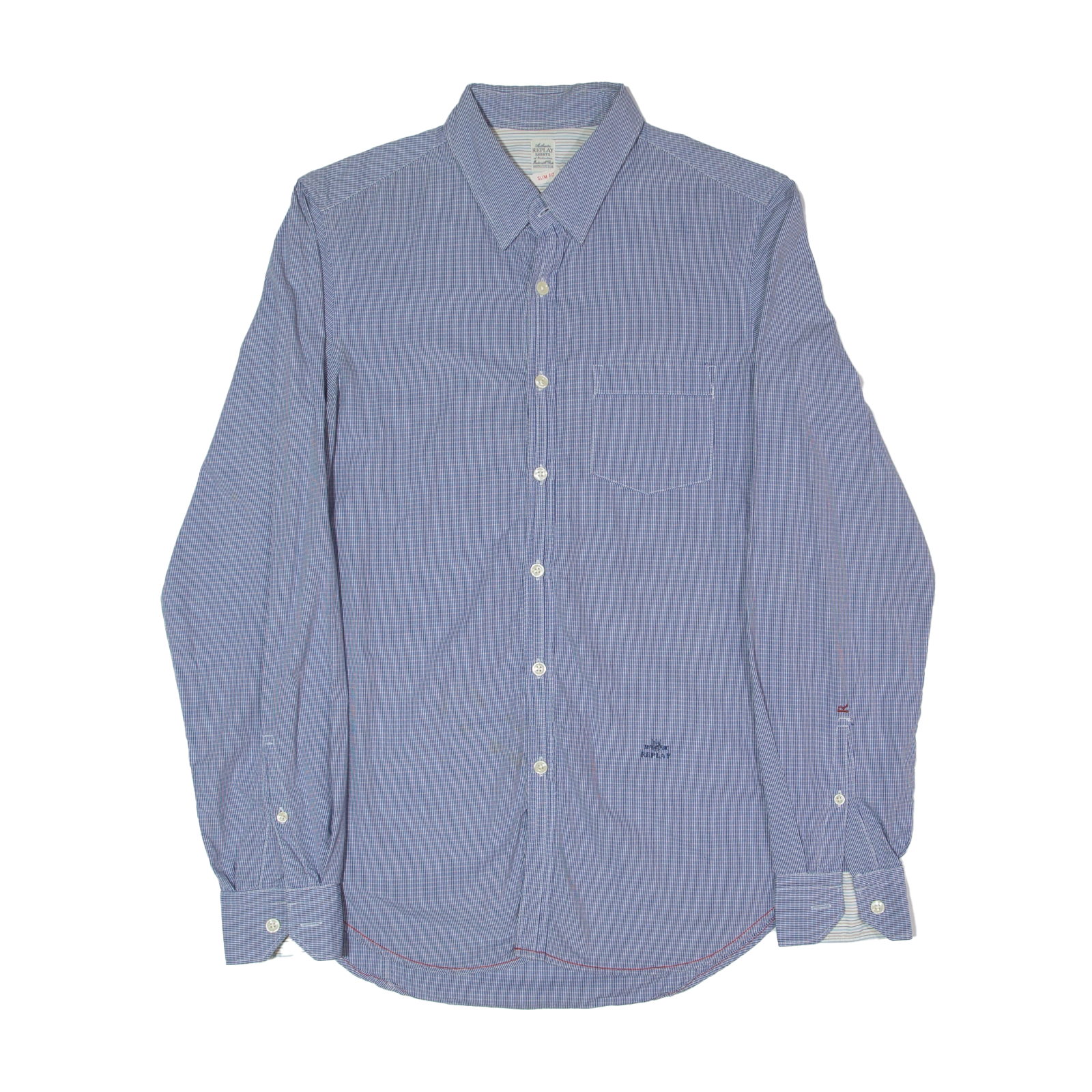 REPLAY Slim Fit Mens Shirt Blue Geometric Long Sleeve S
