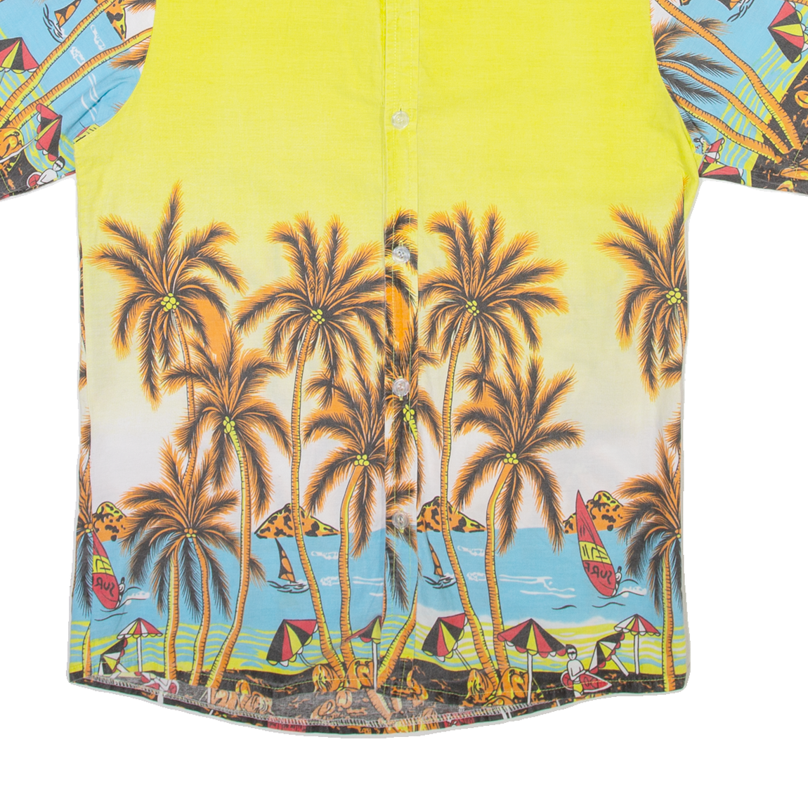 REVERSE Mens Hawaiian Shirt Yellow Floral M