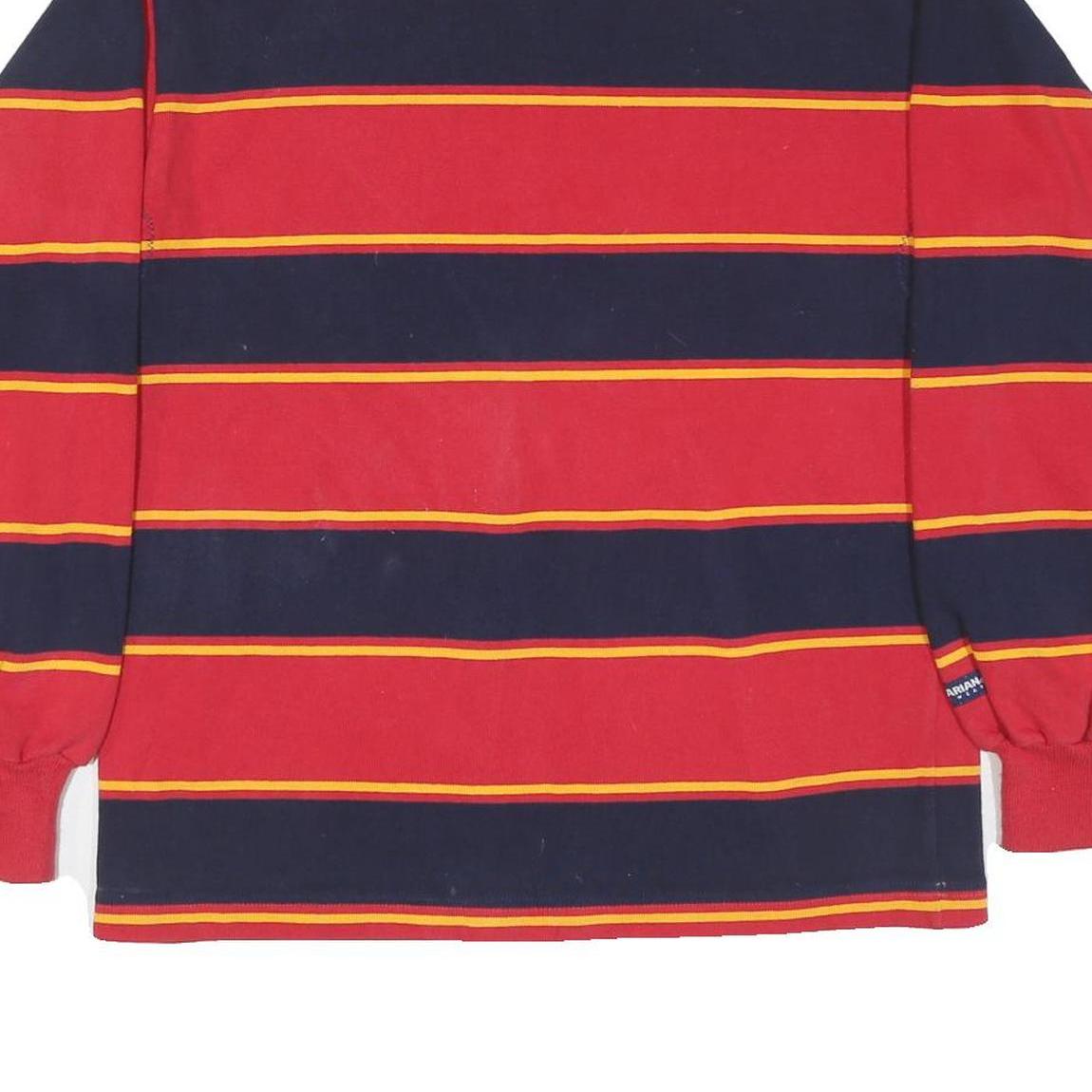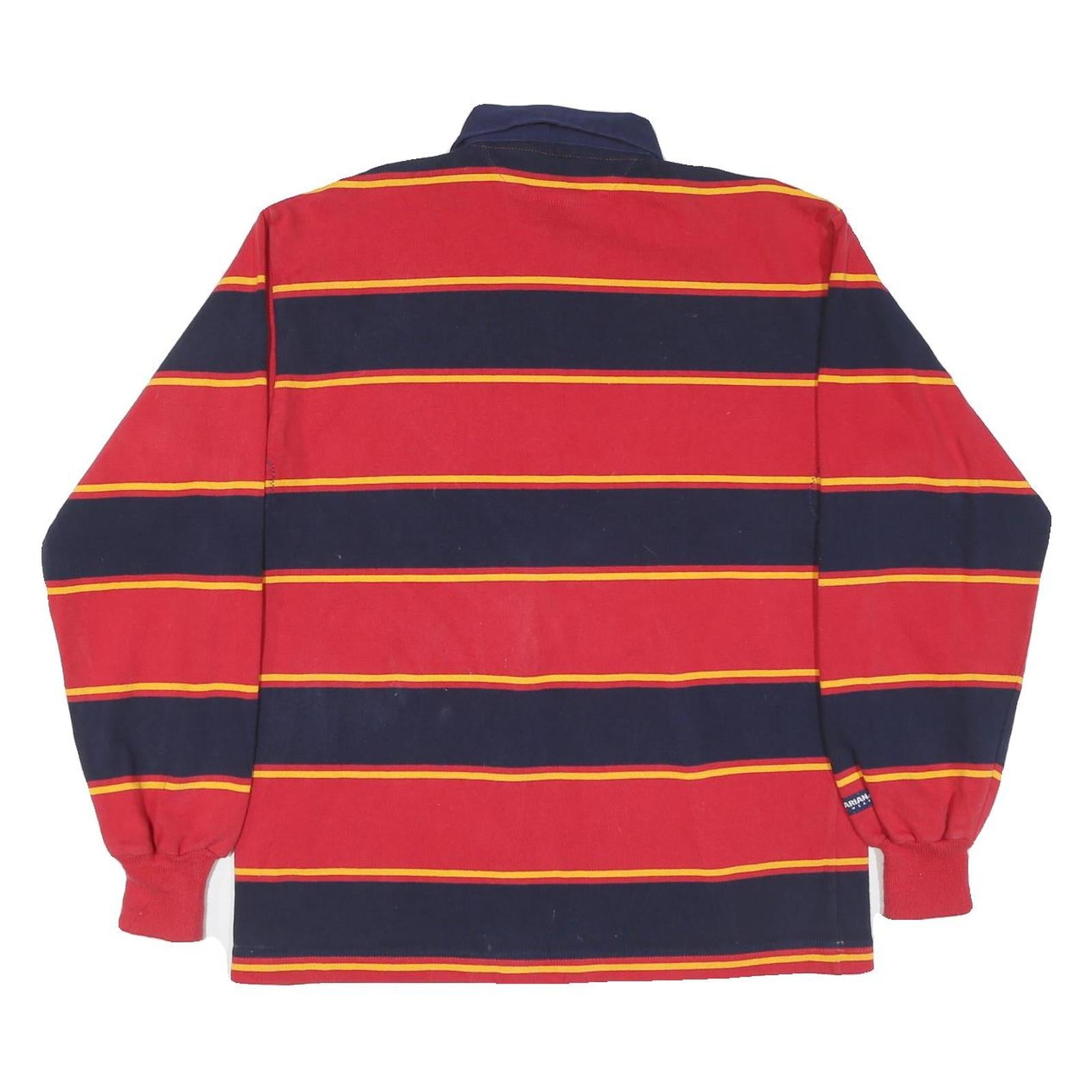 RUGBY WEAR Mens Red & Navy Yellow Stripe Long Sleeve Polo Shirt M Rugby Style