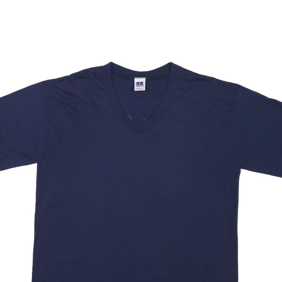 RUSSELL ATHLETIC Mens Navy Blue Graphic T-Shirt L Short Sleeve V-Neck Casual