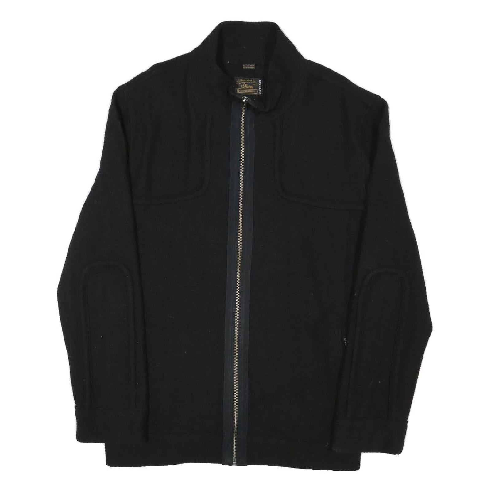 S. OLIVER Mens Black Wool Blend Jacket 2XL Zip Classic Plain Warm Stylish