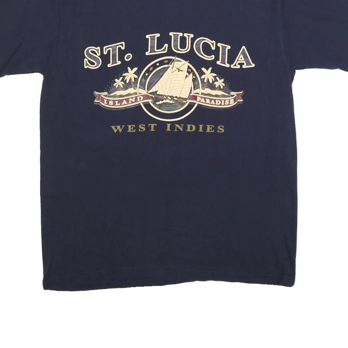 SHAM'S Womens Navy Blue St Lucia Island Paradise Graphic T-Shirt M Short Sleeve