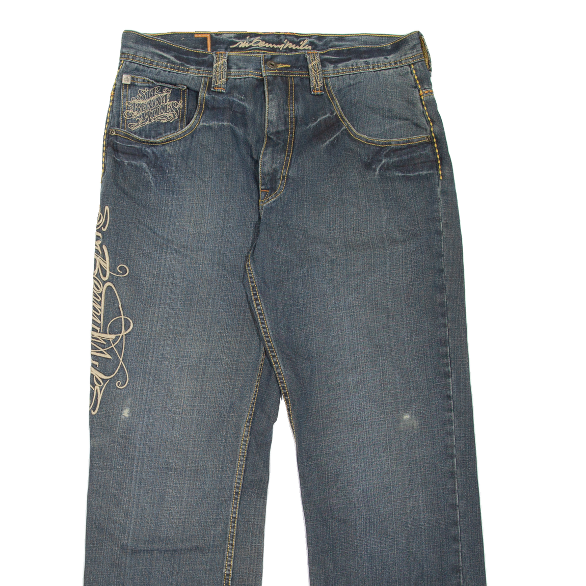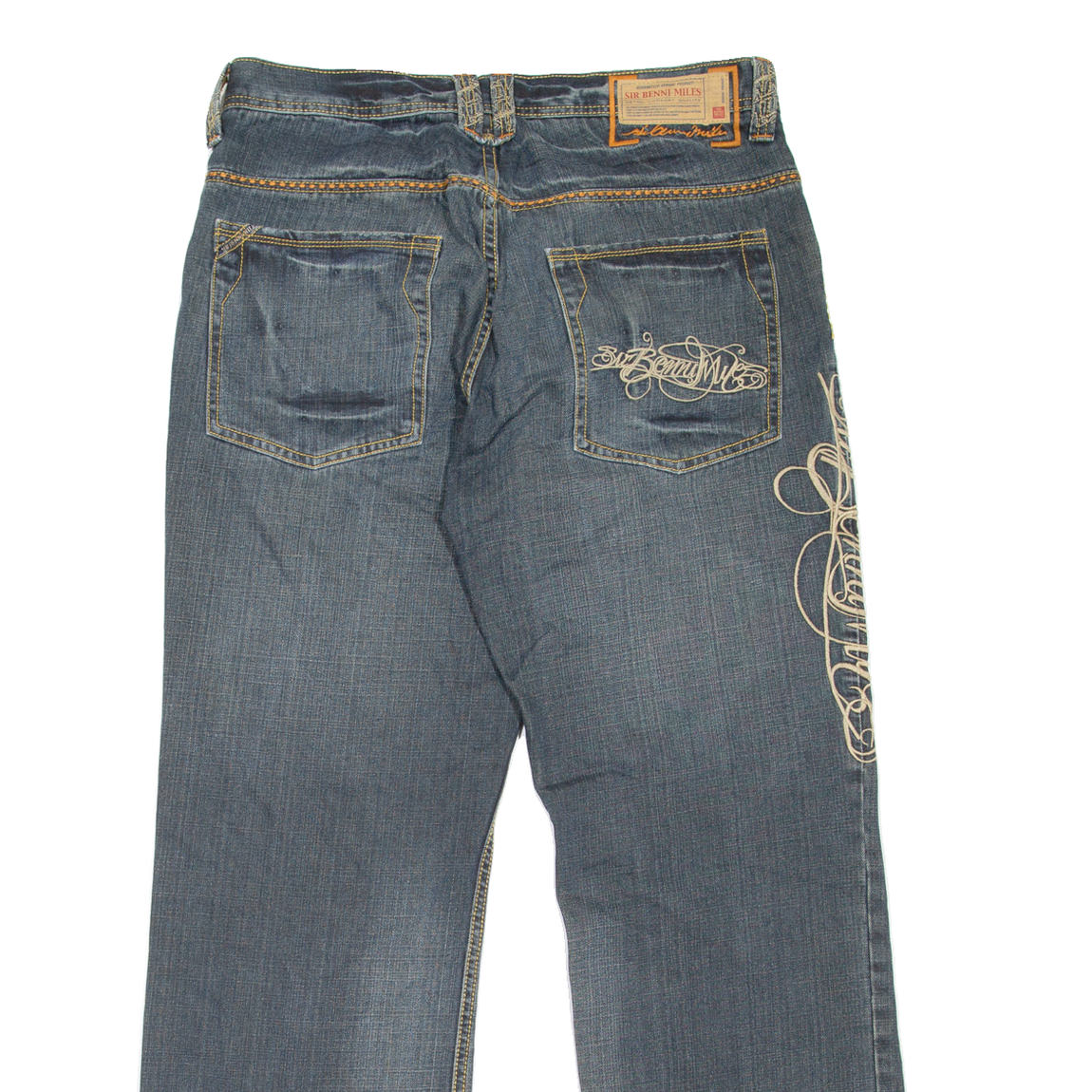 SIR BENNI MILES Mens Jeans Blue Relaxed Skinny Stone Wash W36 L32