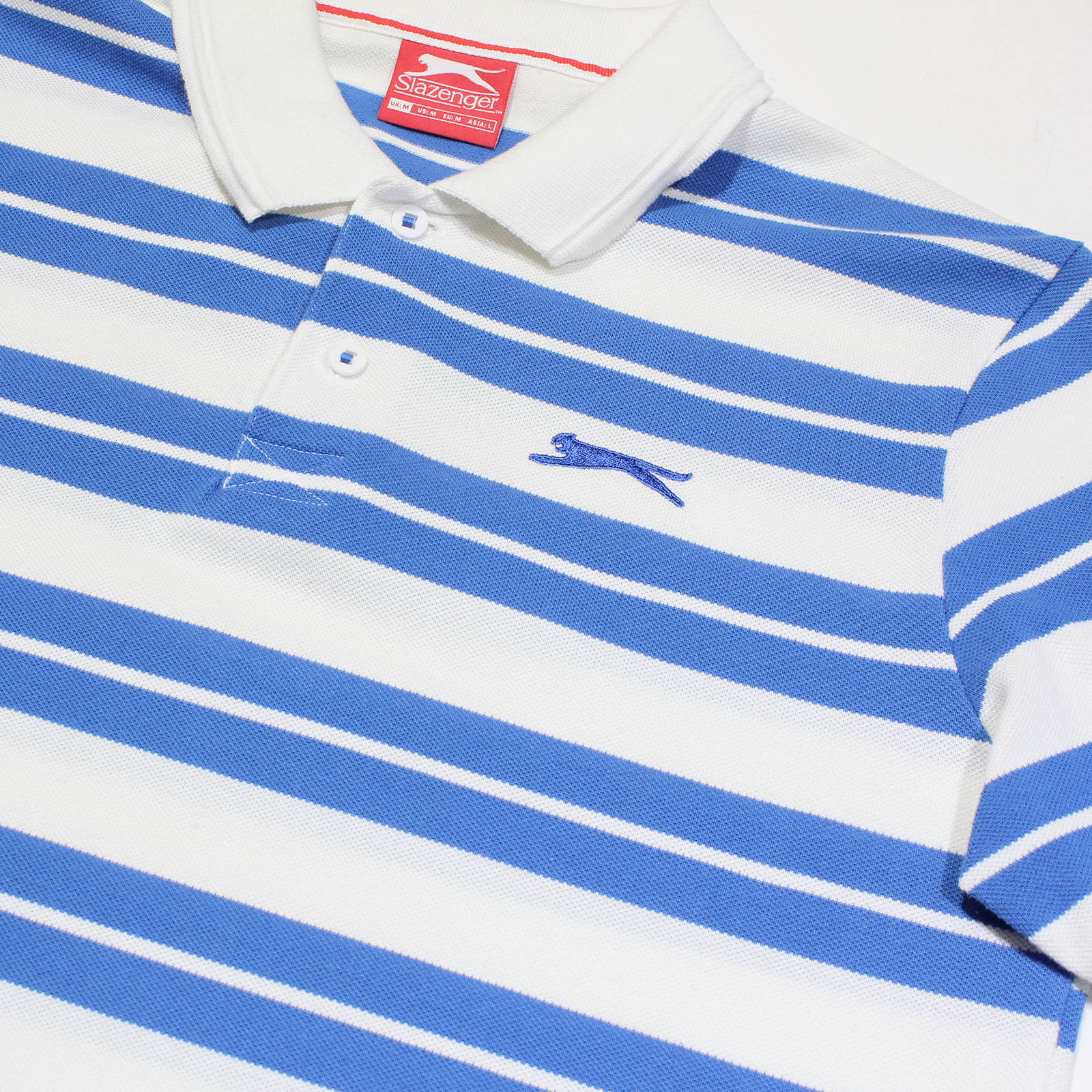 SLAZENGER Mens Polo Shirt Blue Striped M