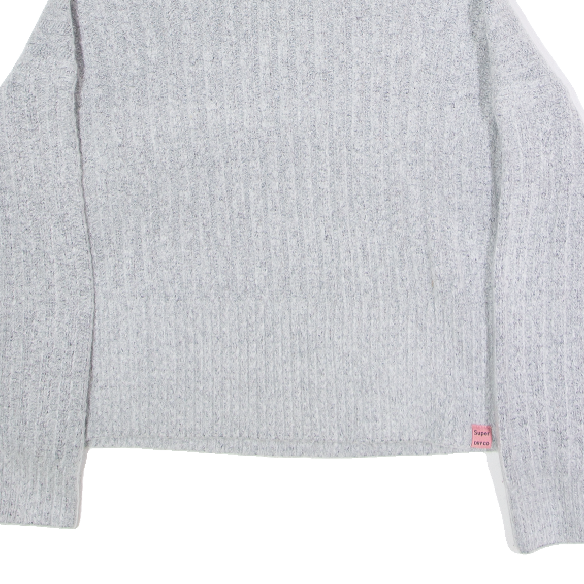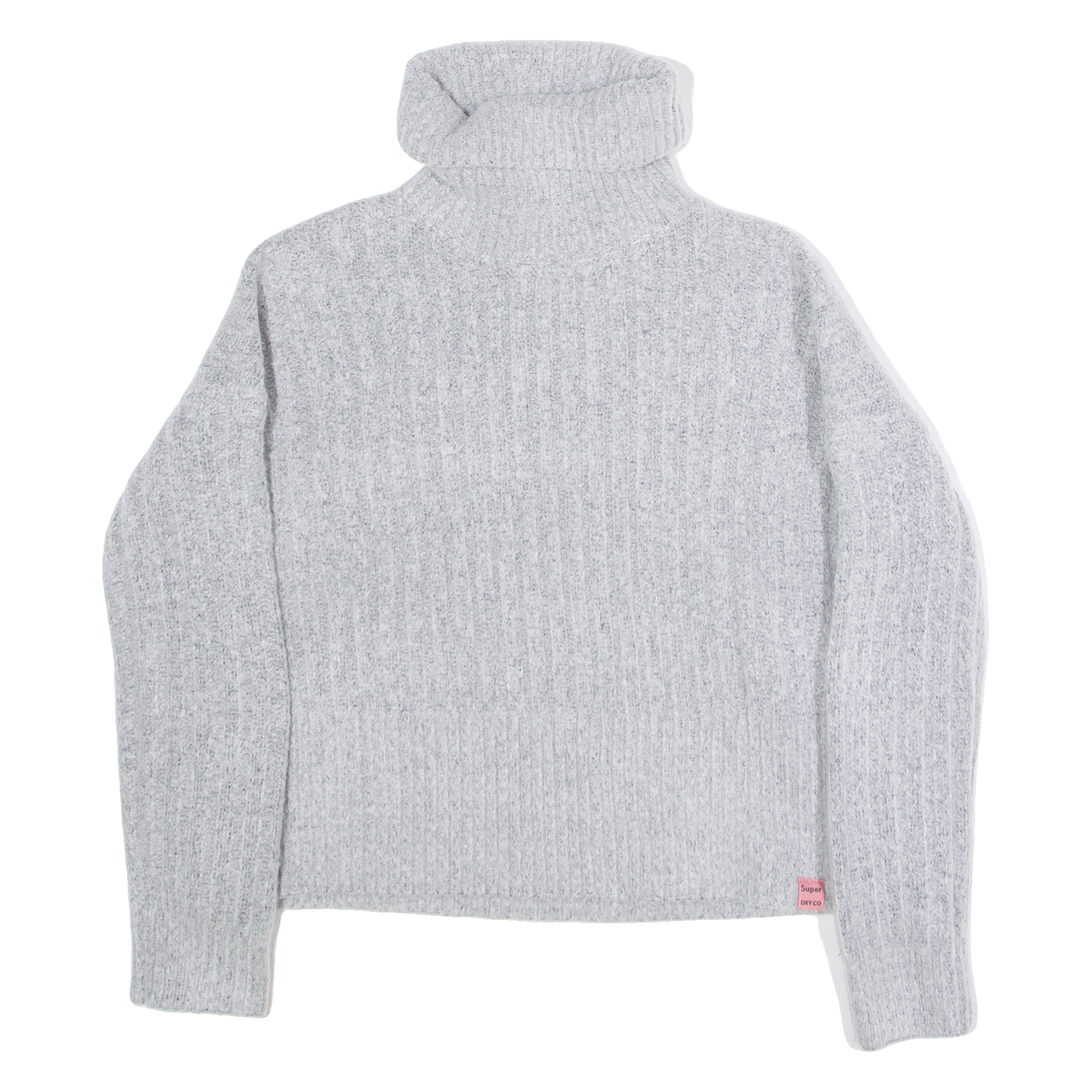 SUPERDRY Cropped Womens Heavy Knit Jumper Grey Roll Neck Tight Knit UK 8