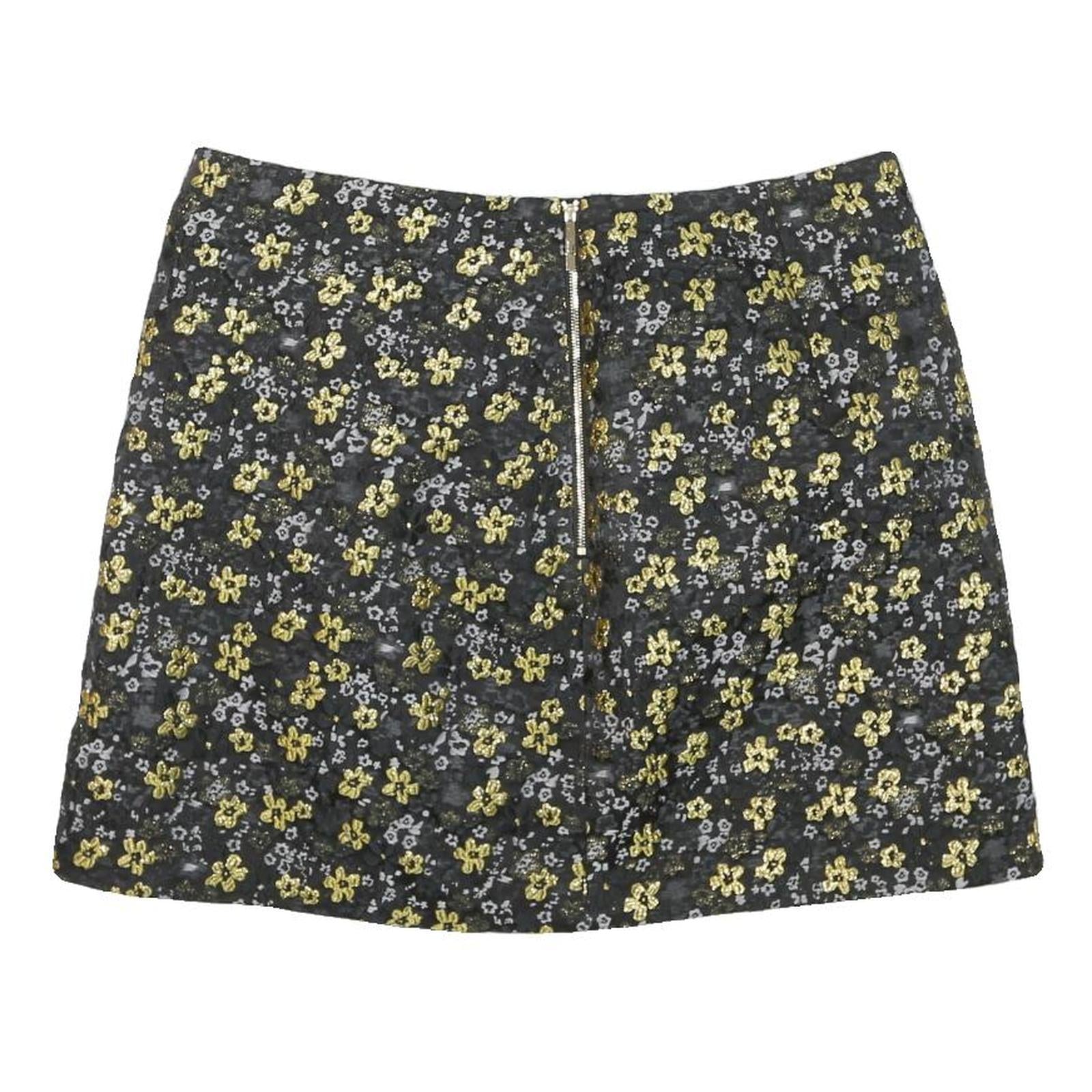 TED BAKER Womens Black & Gold Floral Mini Skirt Polyester Blend 2XL Stylish