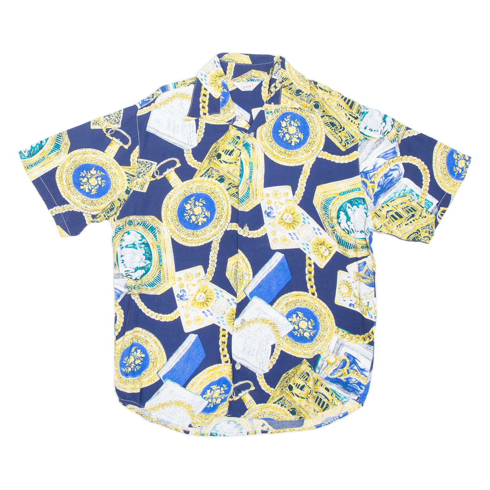 TEDDY'S Mens Shirt Blue Crazy Pattern M
