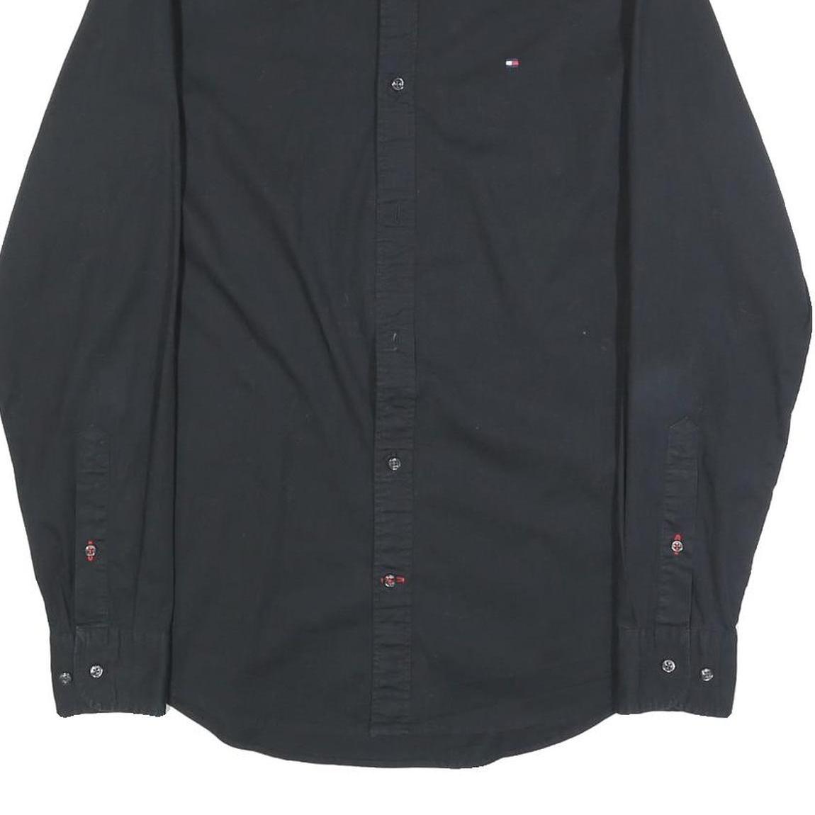 TOMMY HILFIGER Mens Black Button Down Shirt S Cotton Blend Casual Classic