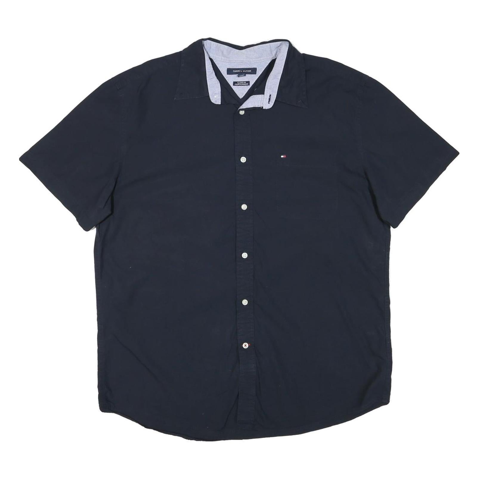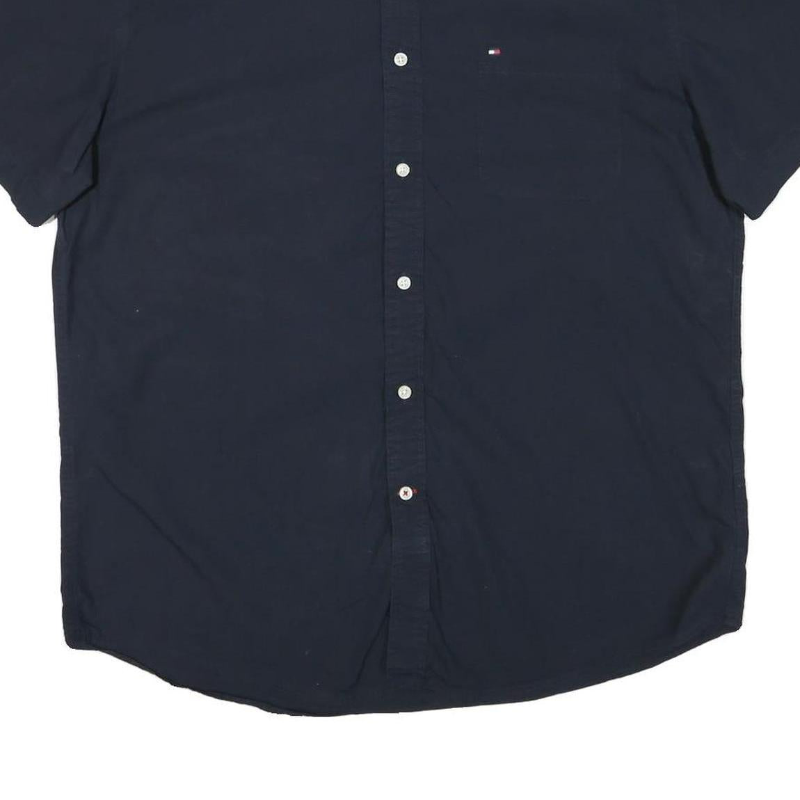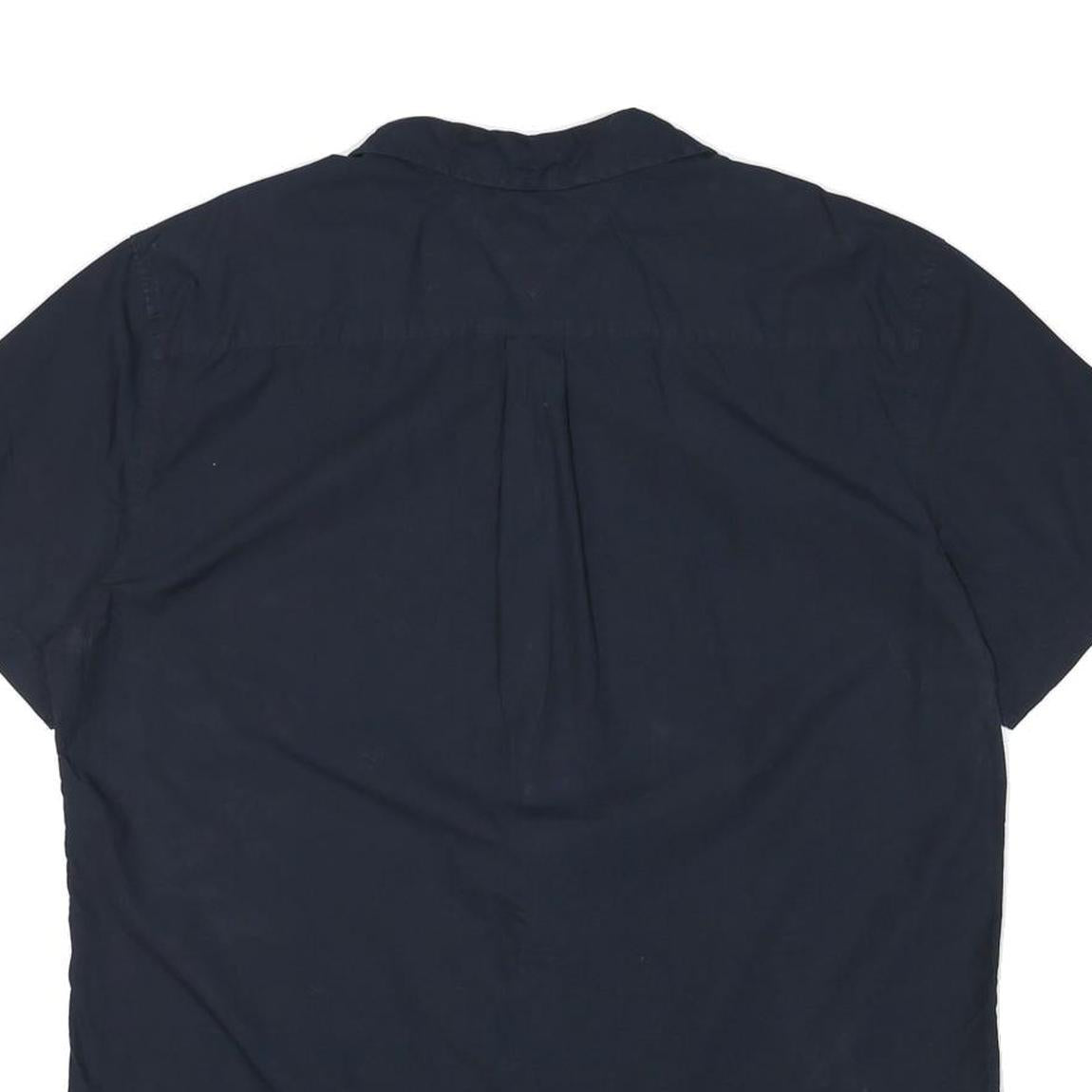 TOMMY HILFIGER Mens Blue Shirt XL Cotton Blend Short Sleeve Casual Button Down
