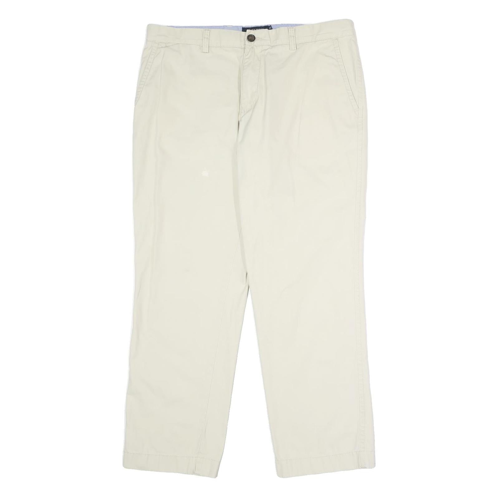 TOMMY HILFIGER Mens Cotton Beige Classic Straight Trousers W36 L29 Summer Casual