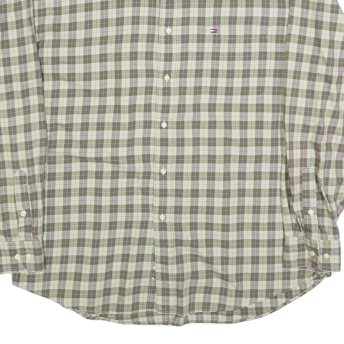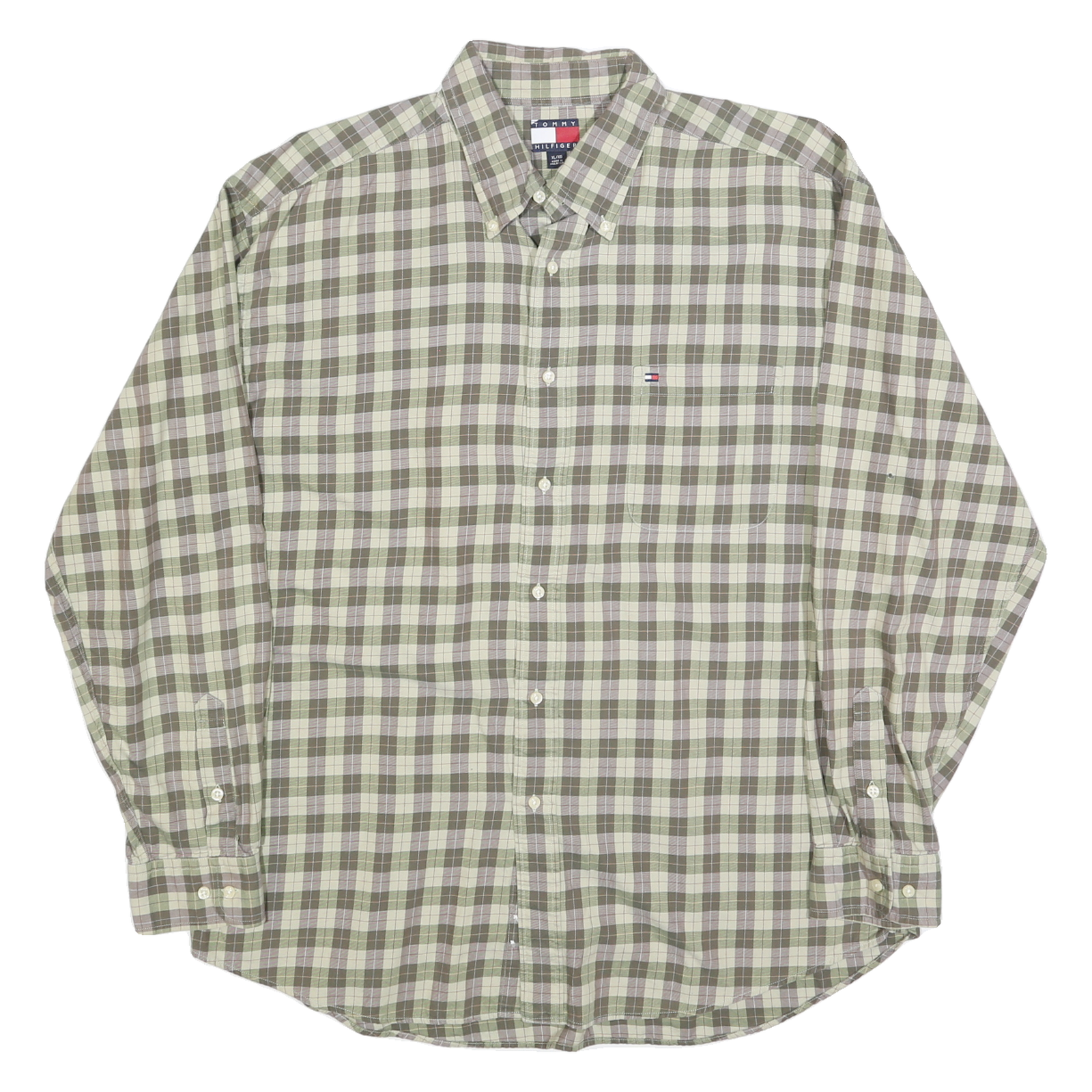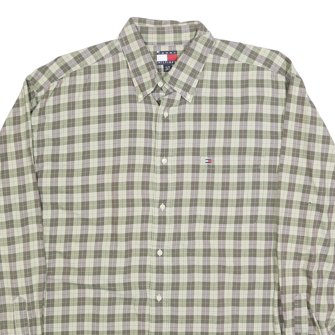 TOMMY HILFIGER Mens Green Check Shirt XL Button-Down Long Sleeve Casual Cotton