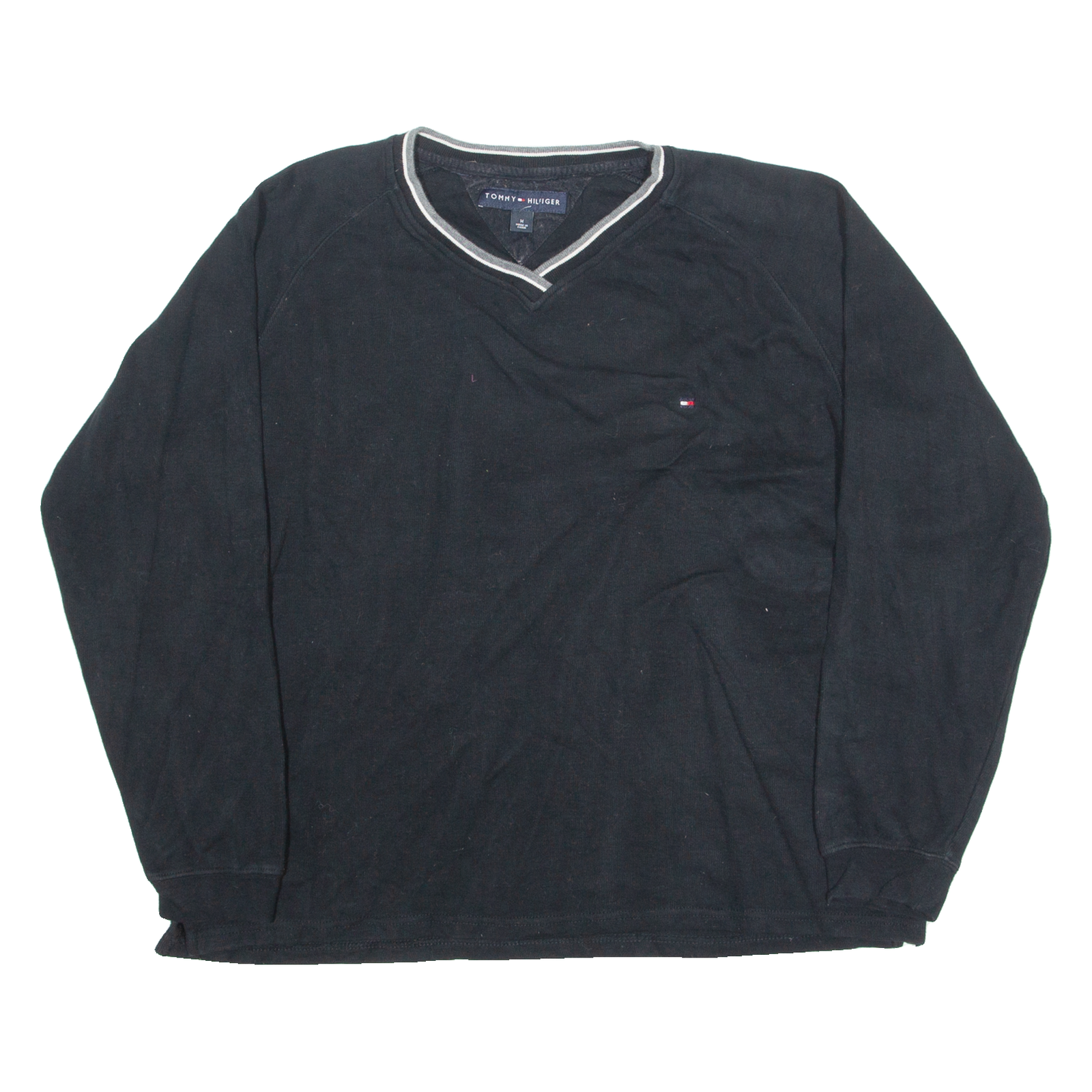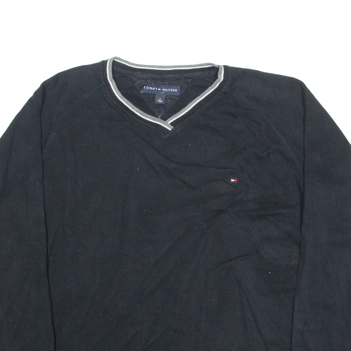 TOMMY HILFIGER Mens Jumper Black V-Neck Tight Knit M