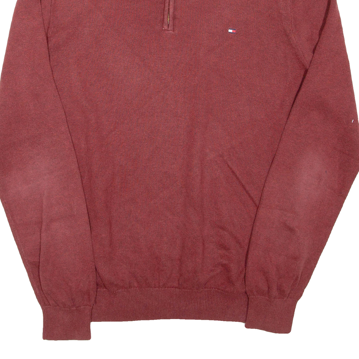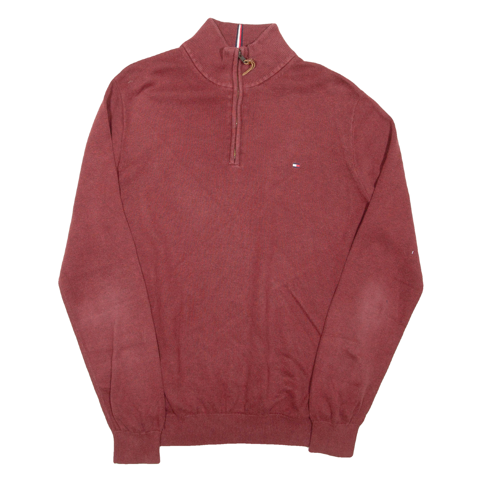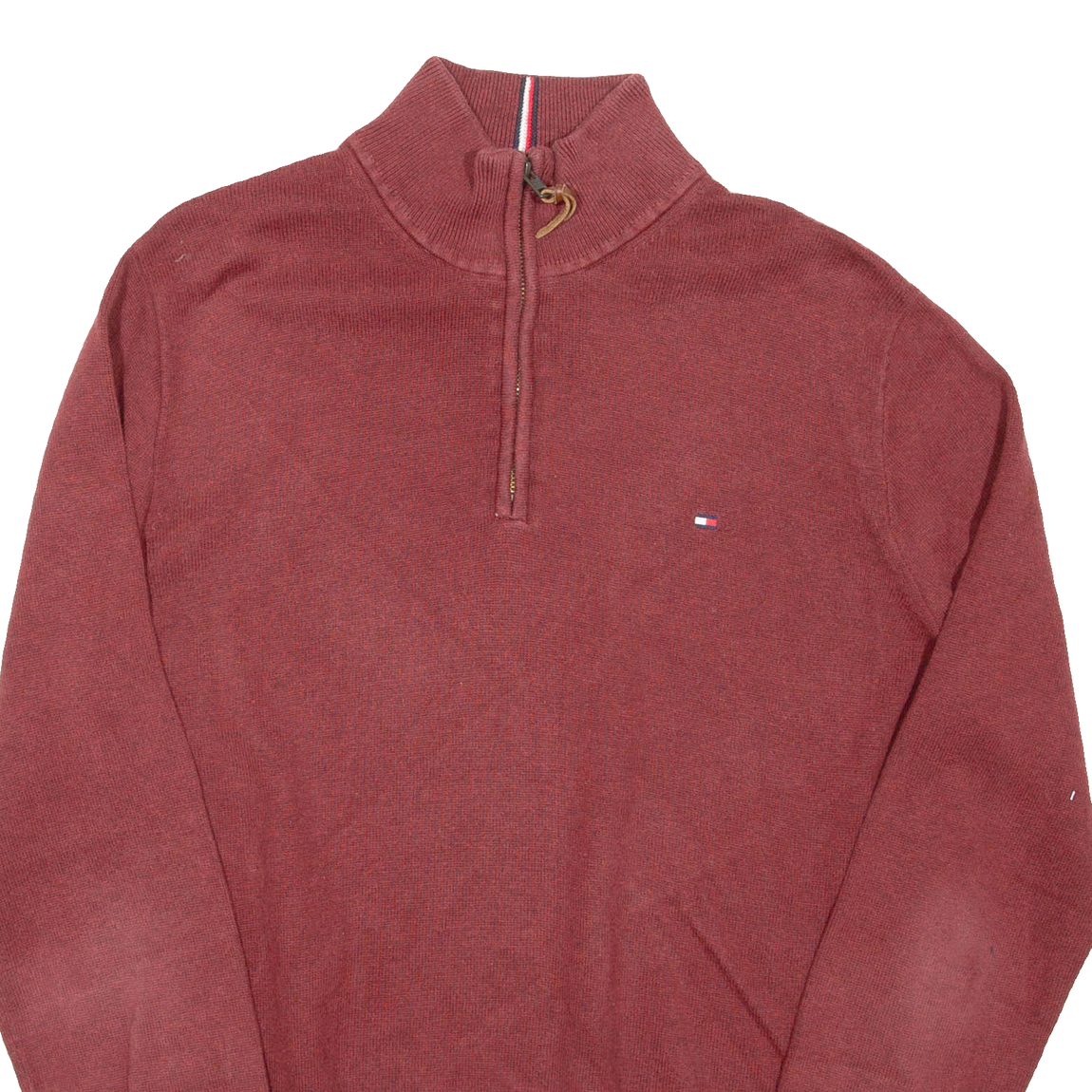 TOMMY HILFIGER Mens Jumper Maroon 1/4 Zip Tight Knit L