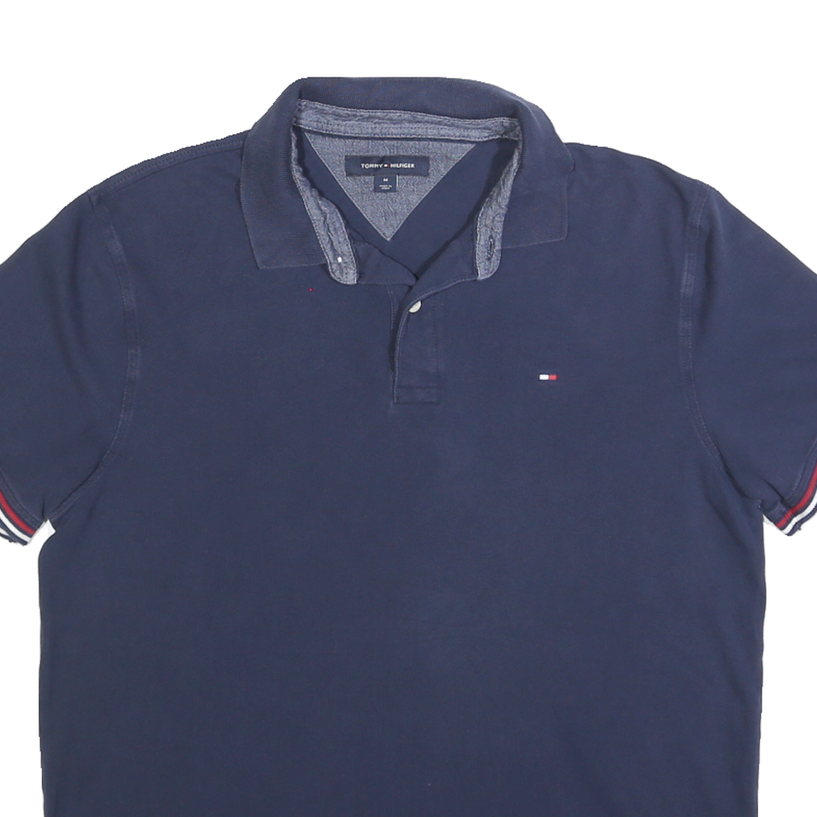 TOMMY HILFIGER Mens Navy Blue Cotton Blend Short Sleeve Polo Shirt M Classic Fit
