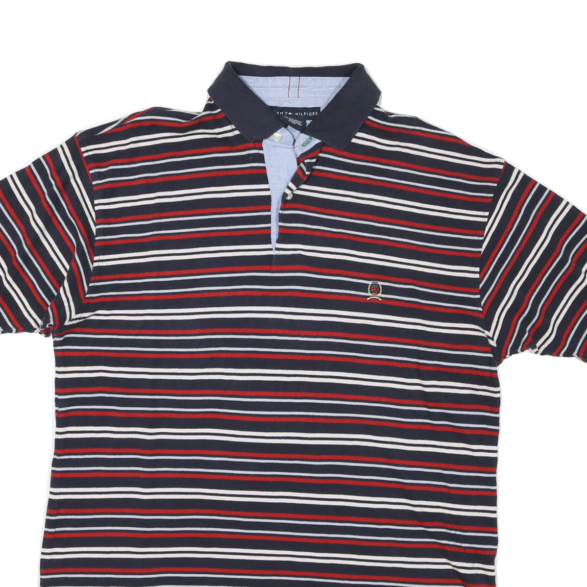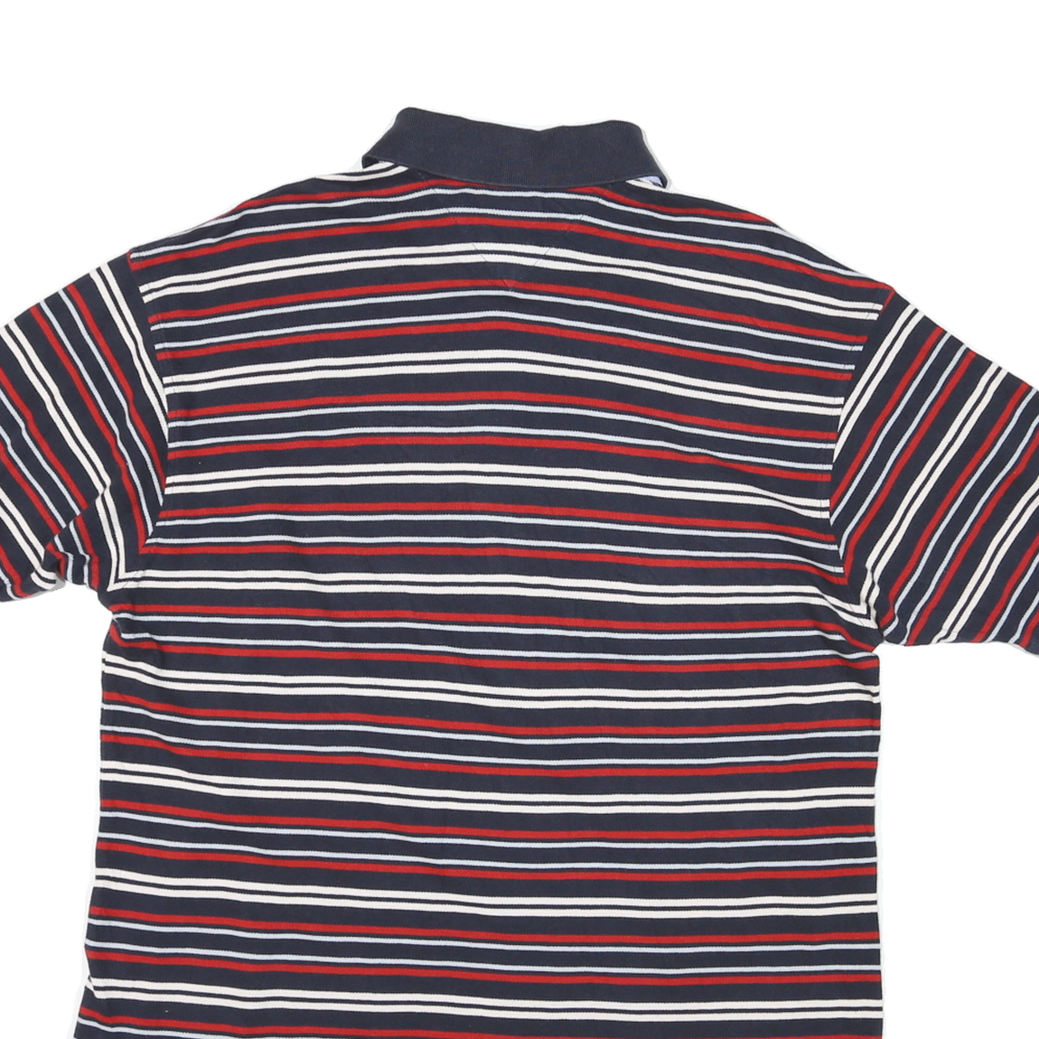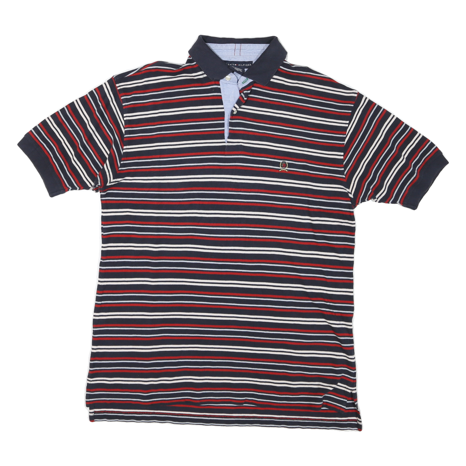 TOMMY HILFIGER Mens Navy Blue & Red Striped Short Sleeve Polo Shirt L Classic