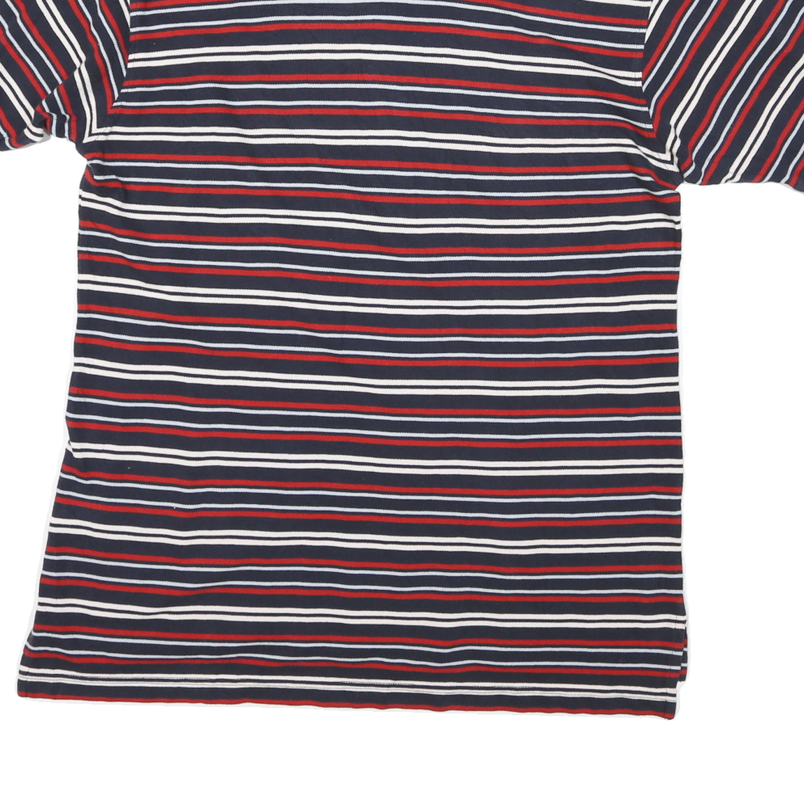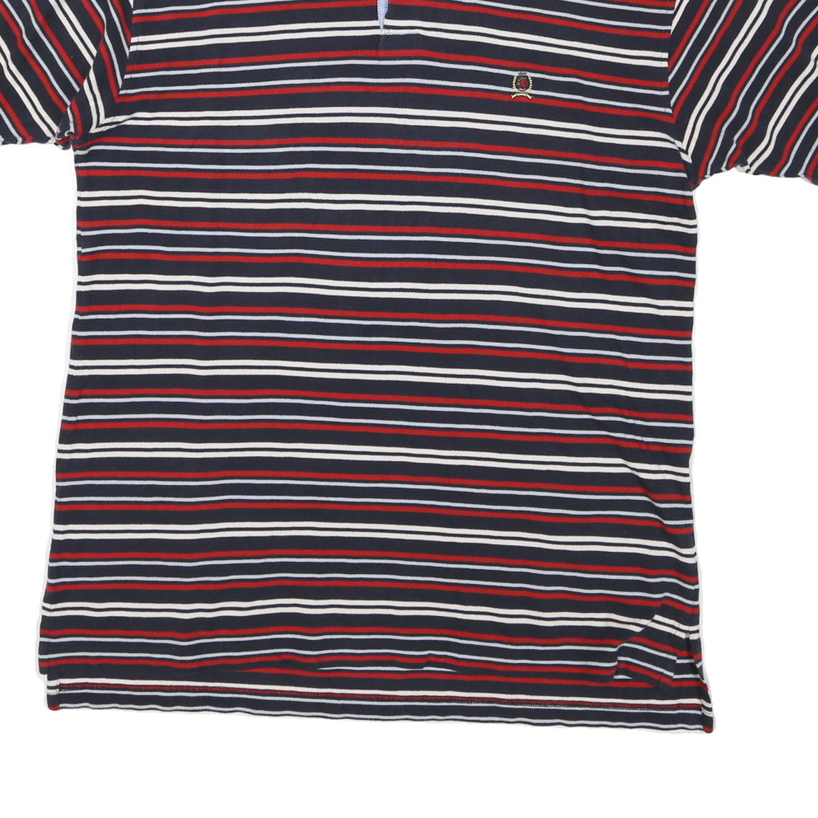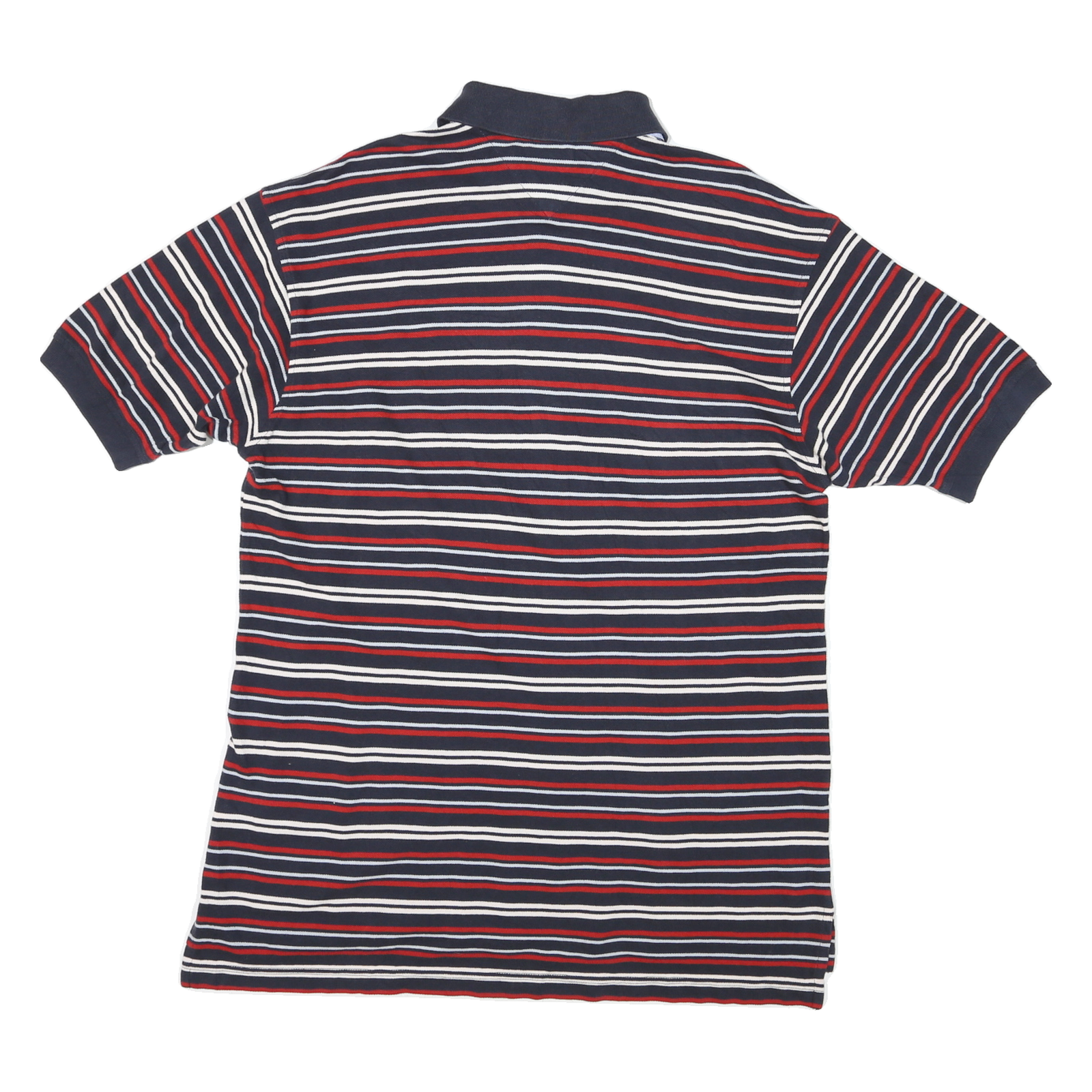 TOMMY HILFIGER Mens Navy Blue & Red Striped Short Sleeve Polo Shirt L Classic