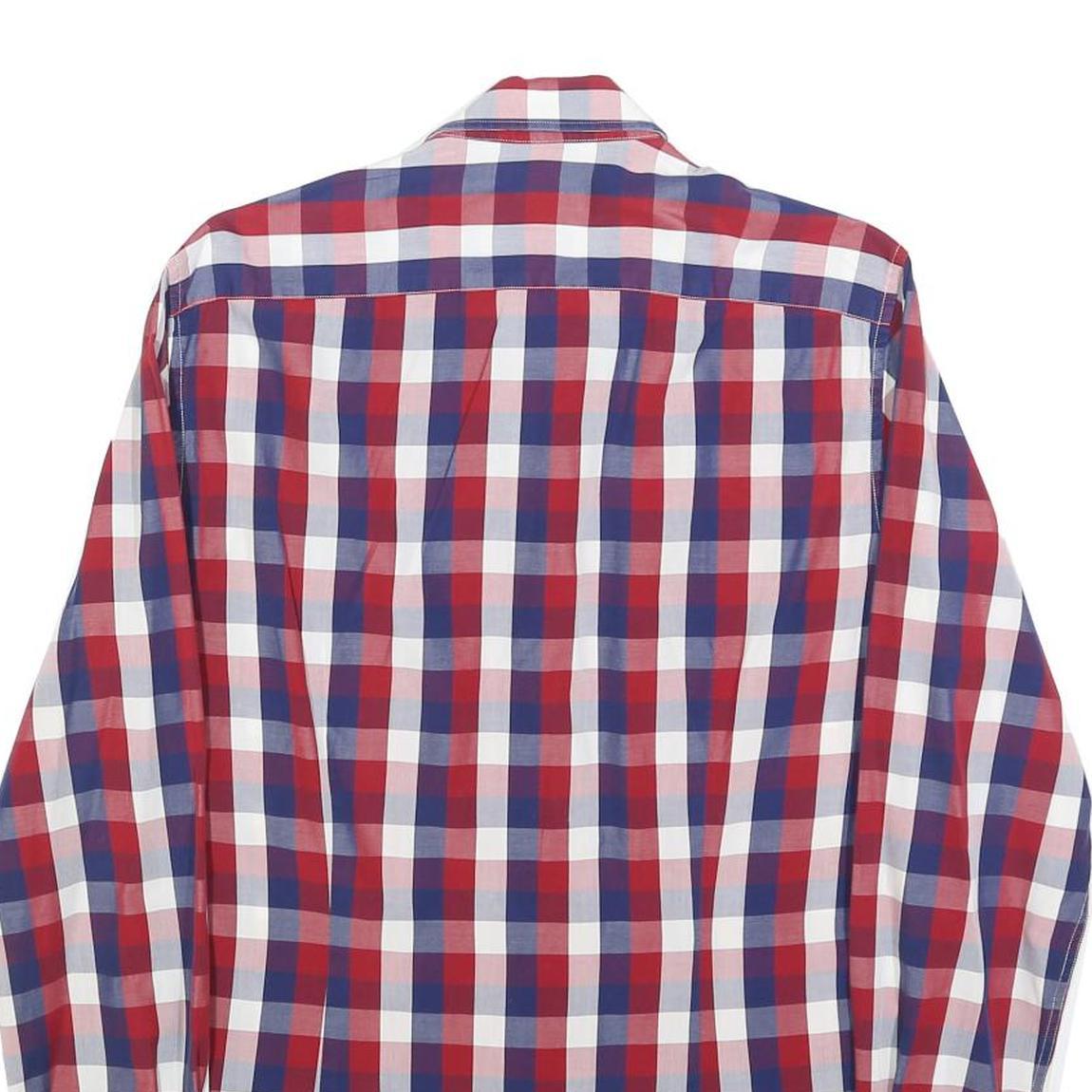 TOMMY HILFIGER Mens Red Blue White Check Shirt S Casual Smart Long Sleeve Cotton