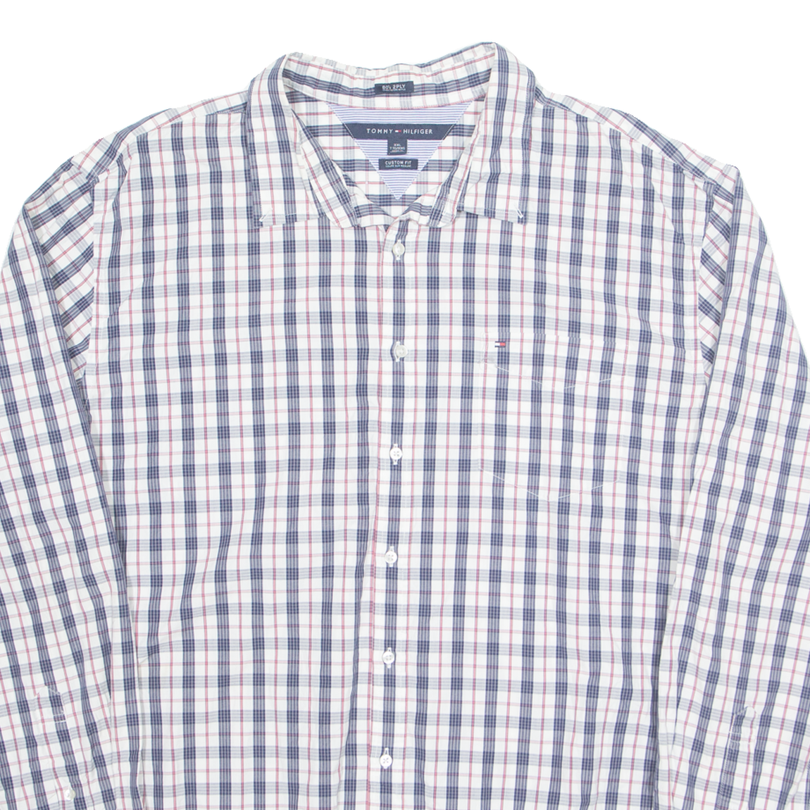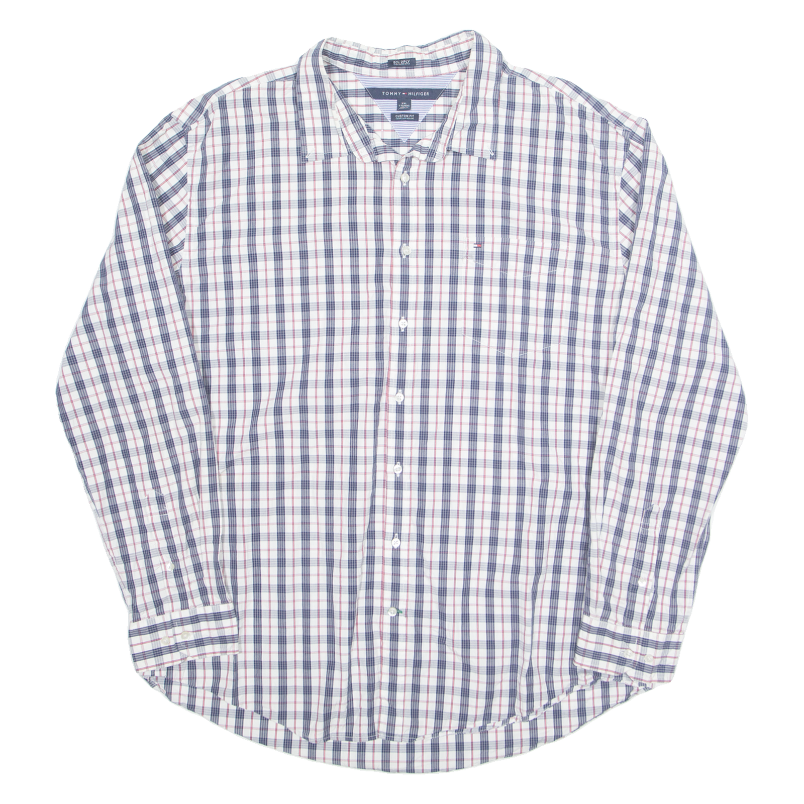TOMMY HILFIGER Mens Shirt Blue Plaid Long Sleeve 2XL