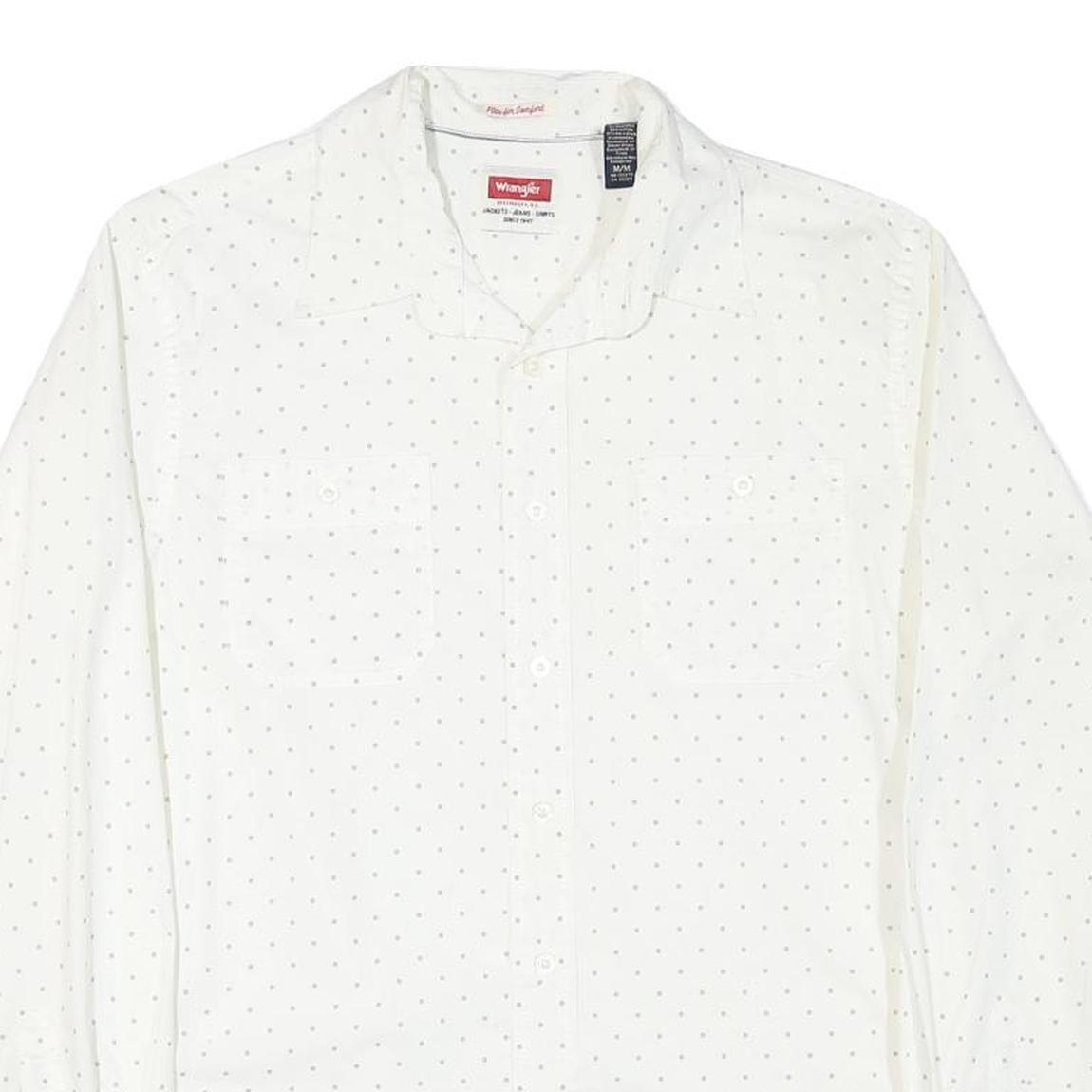 This Mens Tommy Hilfiger shirt features a clean white base with a subtle small dotted pattern spread evenly across the fabric, adding a refined touch to a classic design. The shirt includes a neat button-down front, a relaxed collar, and long sleeves with buttoned cuffs, offering versatile styling options.