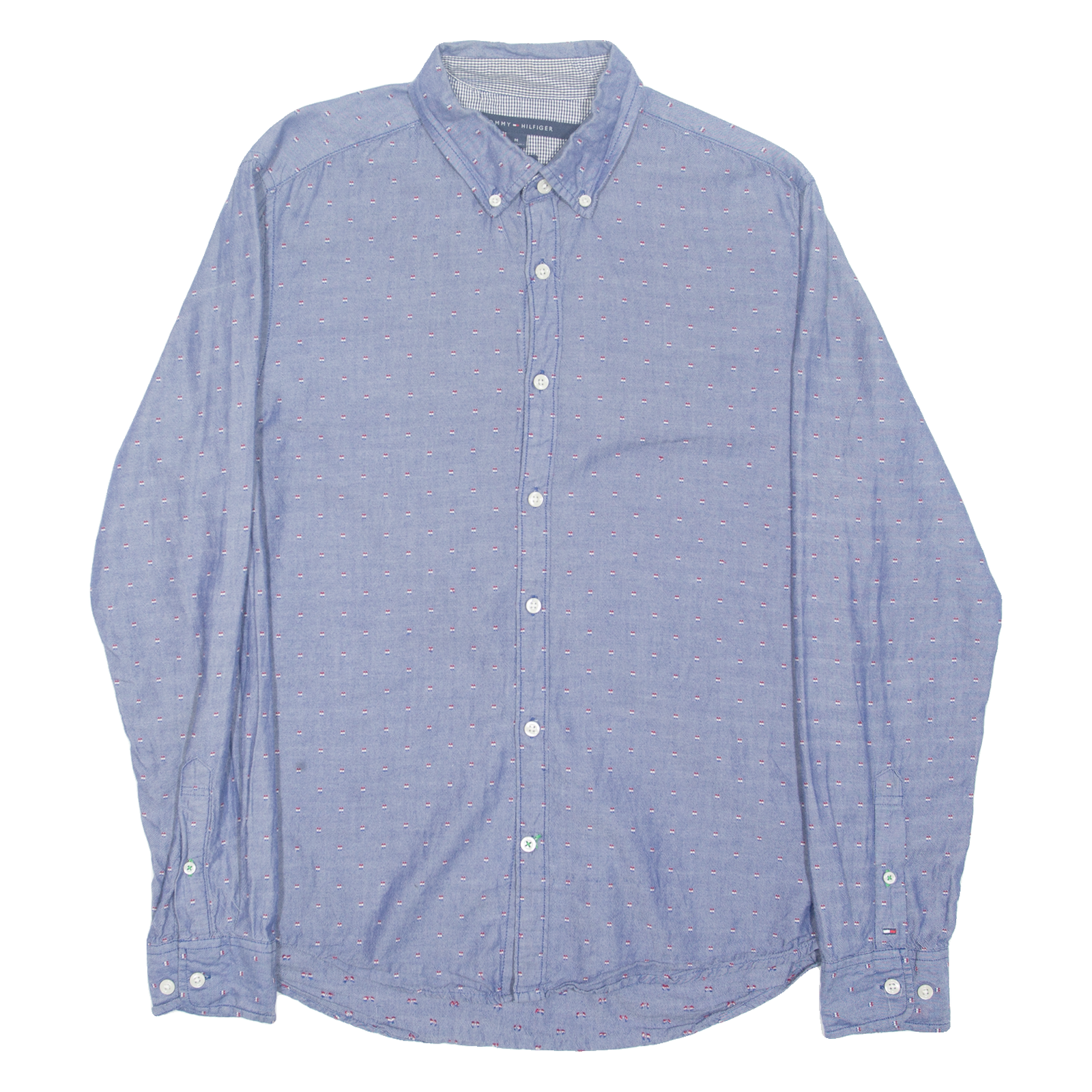 TOMMY HILFIGER New York Fit Mens Shirt Blue Spotted Long Sleeve M