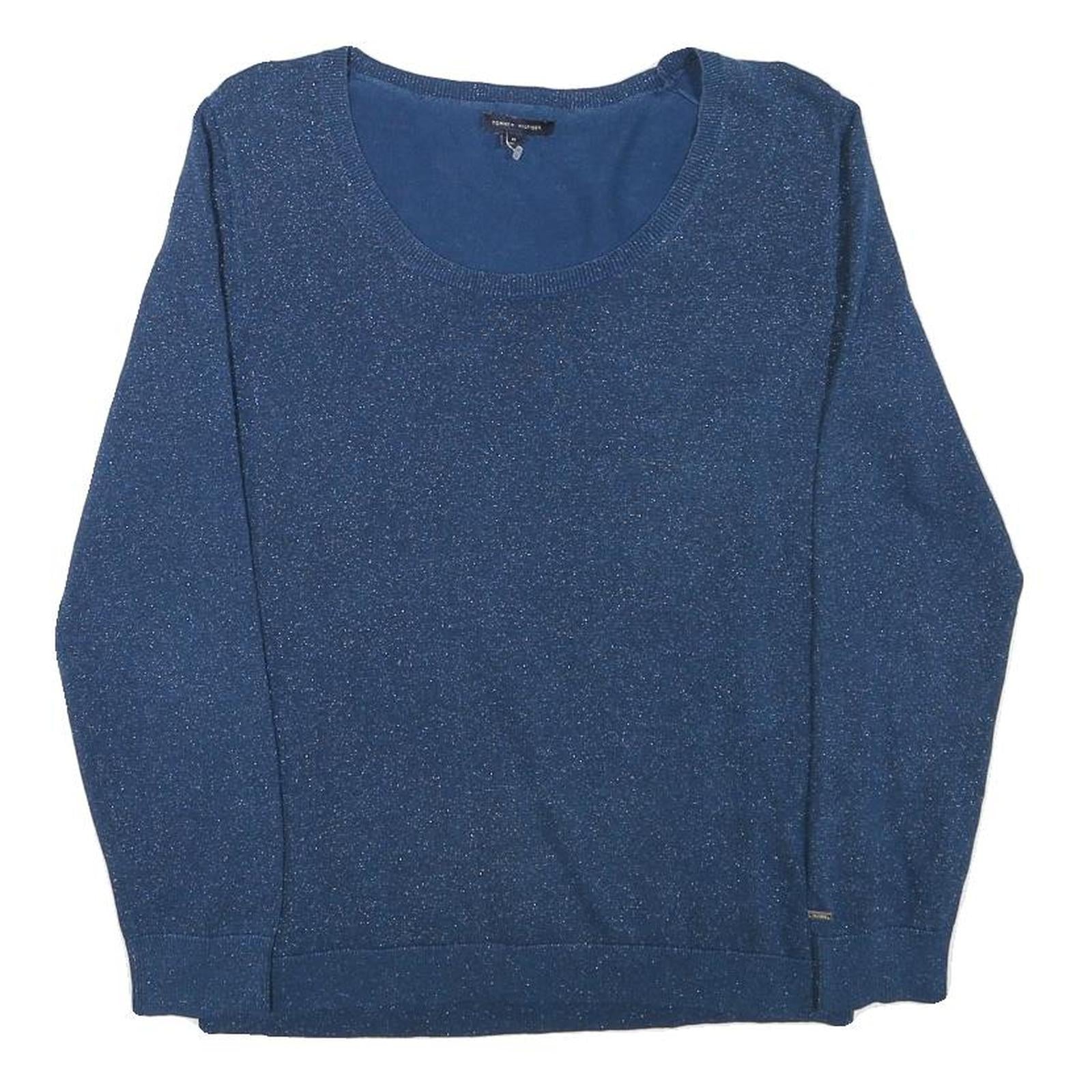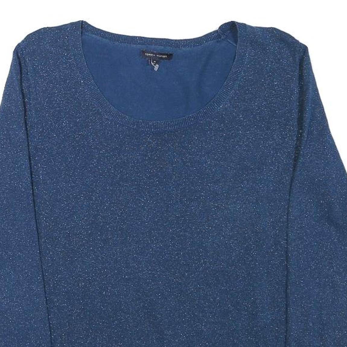 TOMMY HILFIGER Womens Blue Plain Crew Neck Basic Knit Jumper M Cotton Blend
