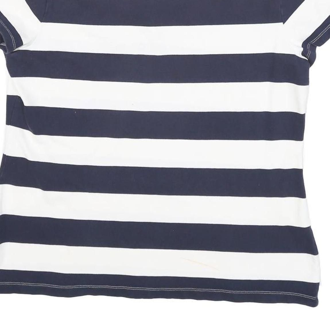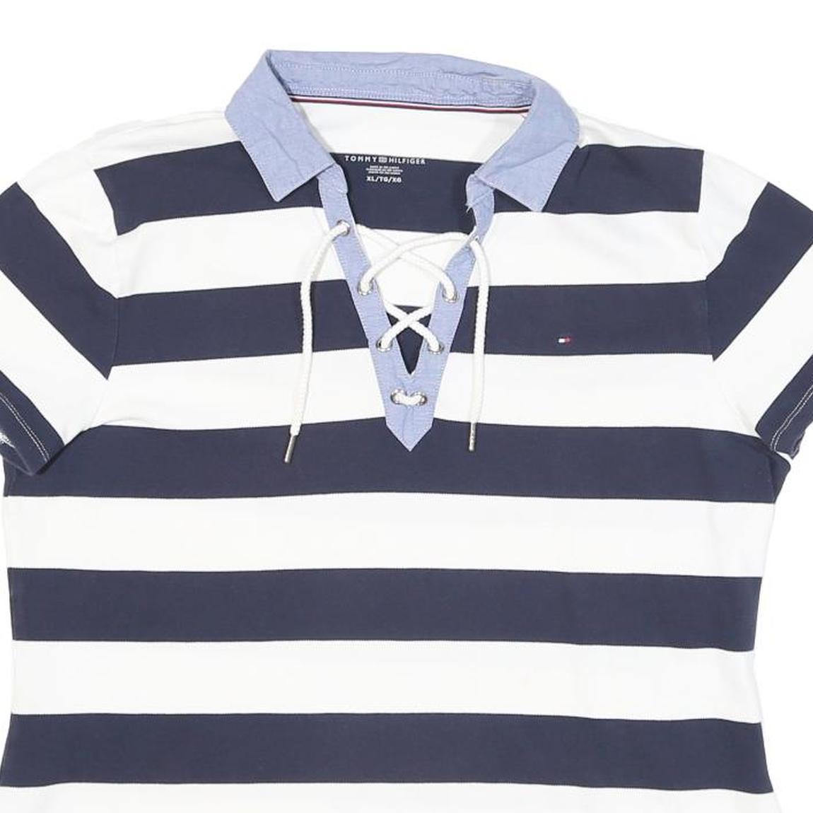 TOMMY HILFIGER Womens Blue & White Stripe Short Sleeve Polo Shirt XL Lace Up
