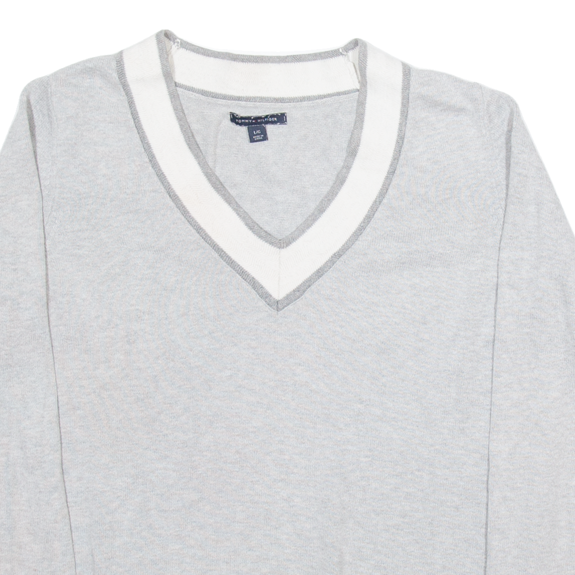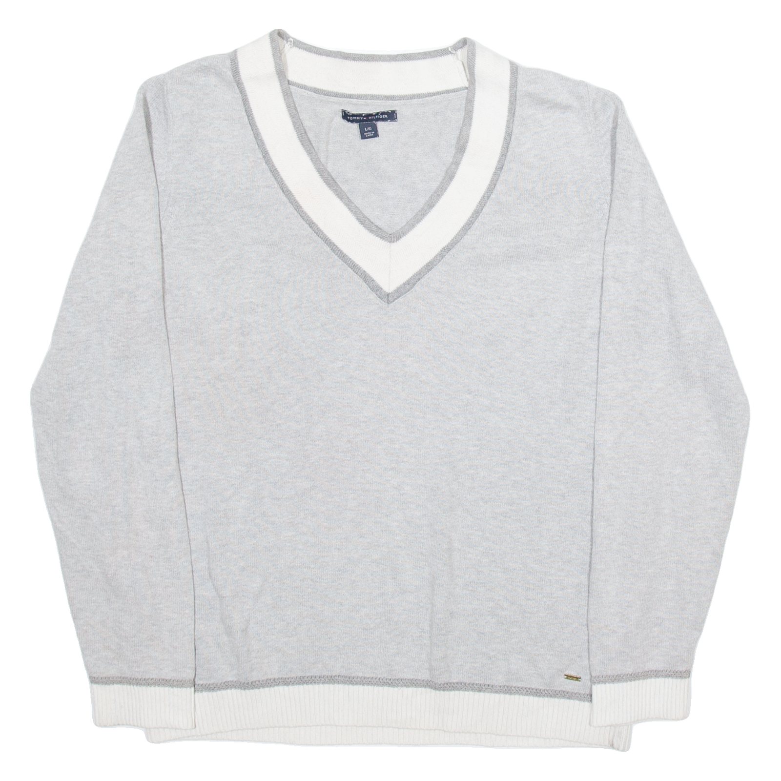 TOMMY HILFIGER Womens Jumper Grey V-Neck Tight Knit L