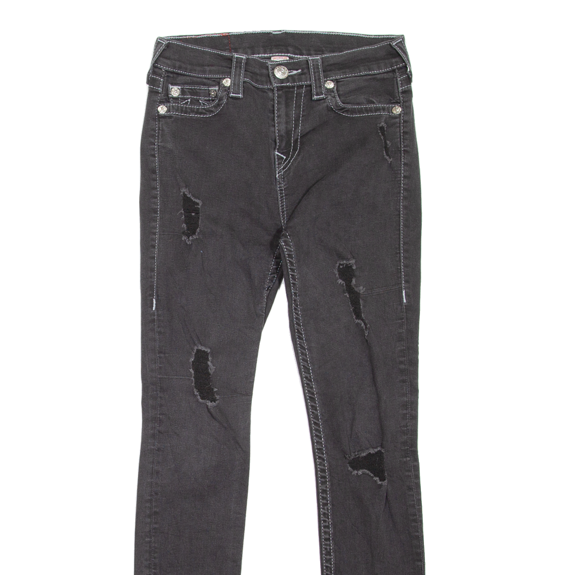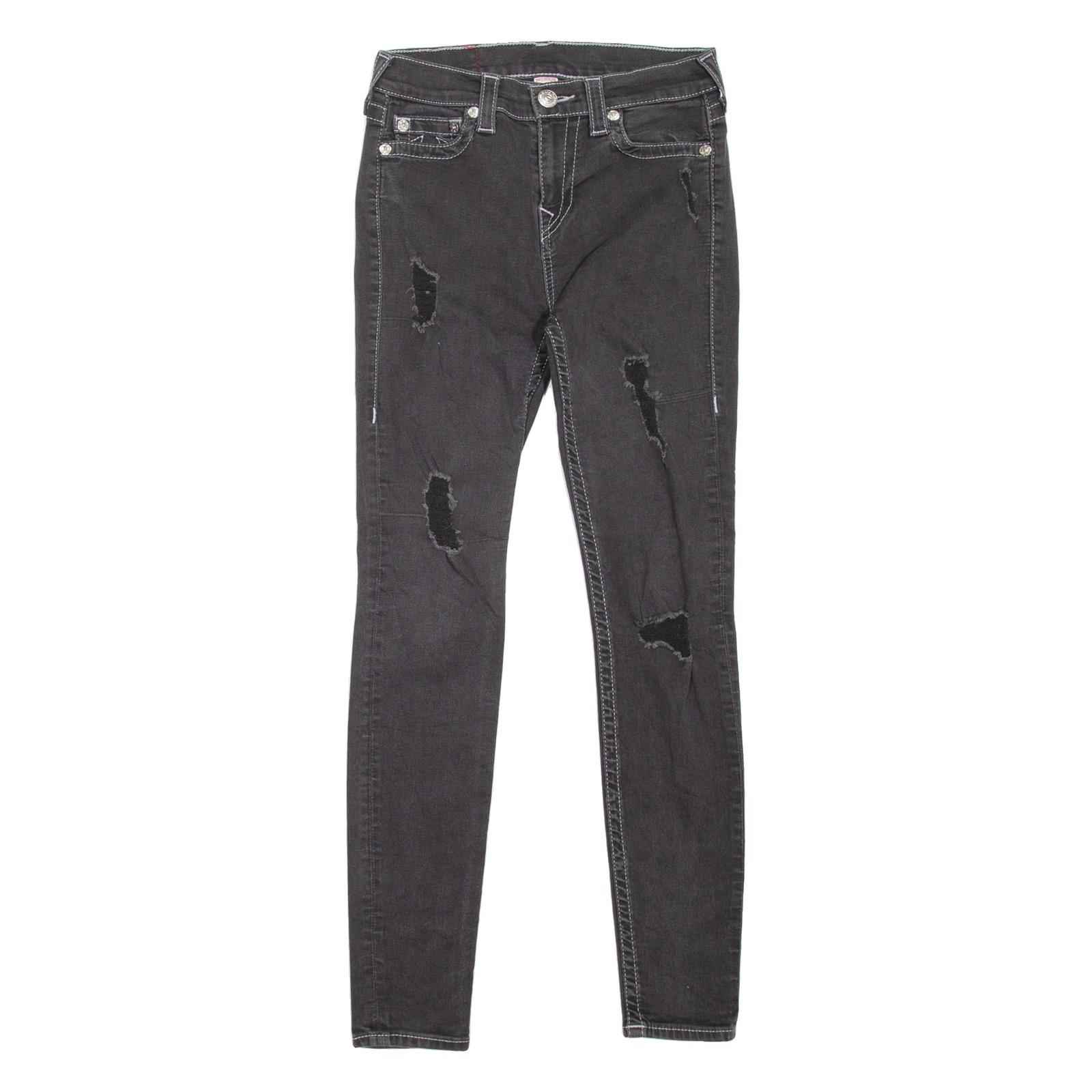 TRUE RELIGION High Waisted Distressed Womens Jeans Black Slim Skinny W25 L29