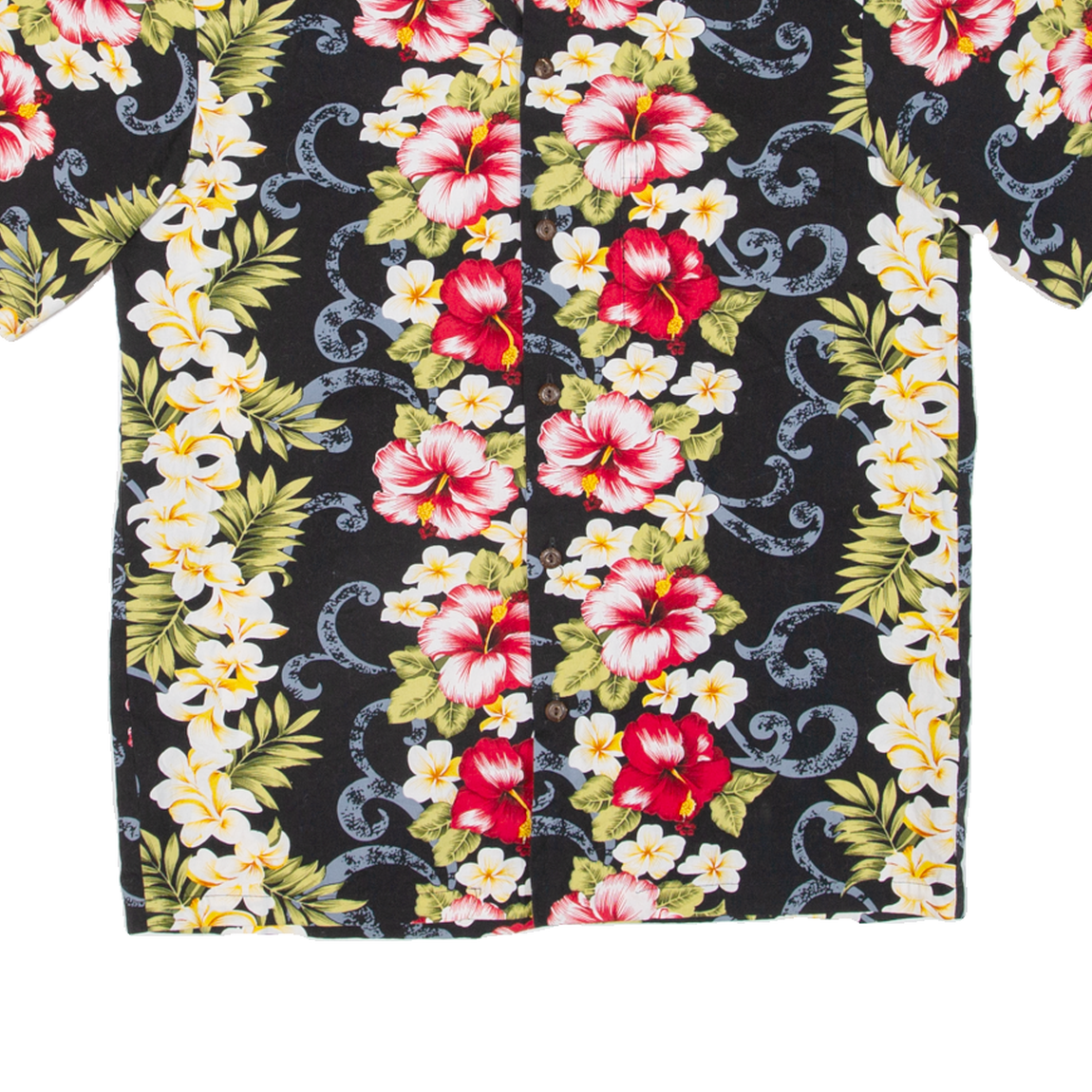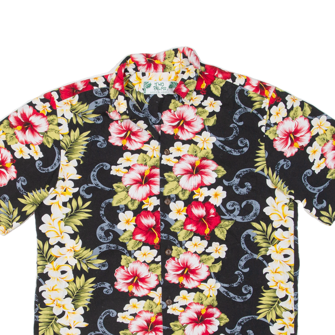 TWO PALMS Mens Hawaiian Shirt Black Floral S