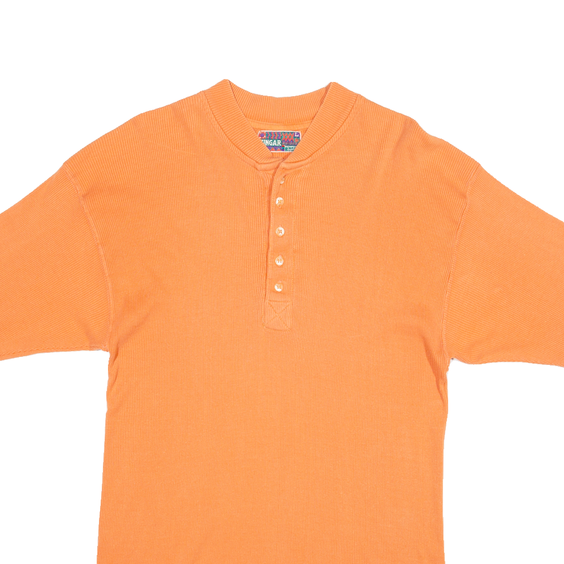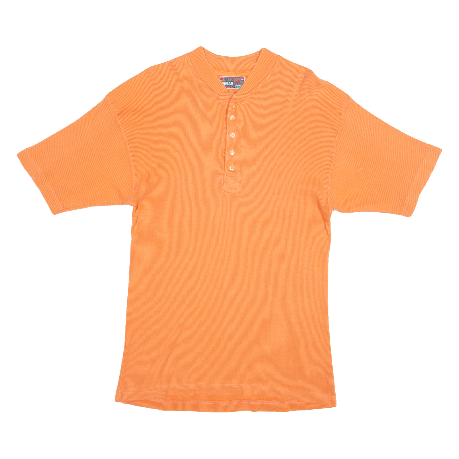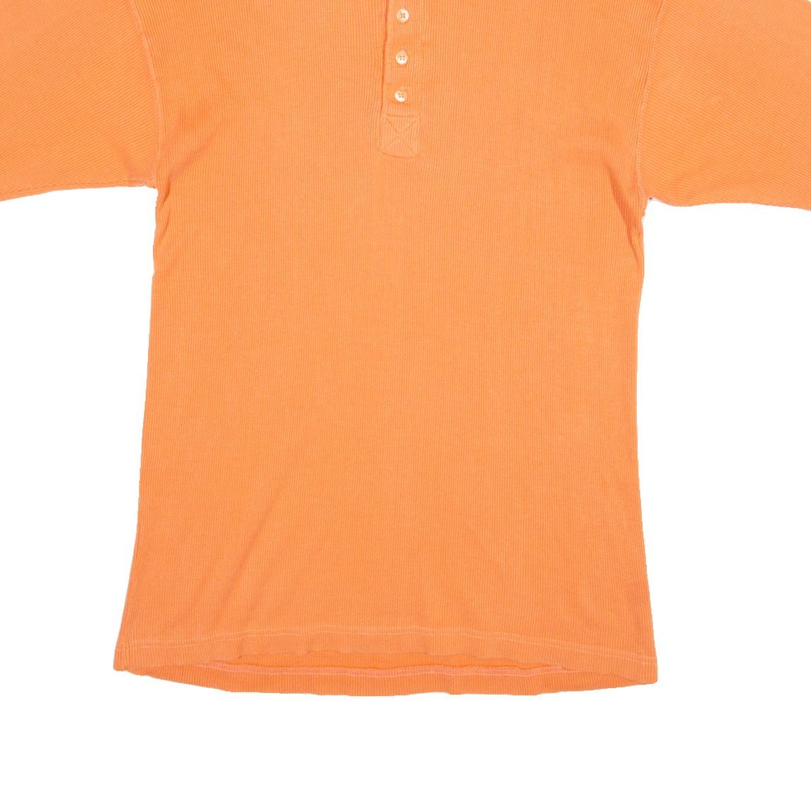 VINEGAR Mens T-Shirt Orange Button Neck L