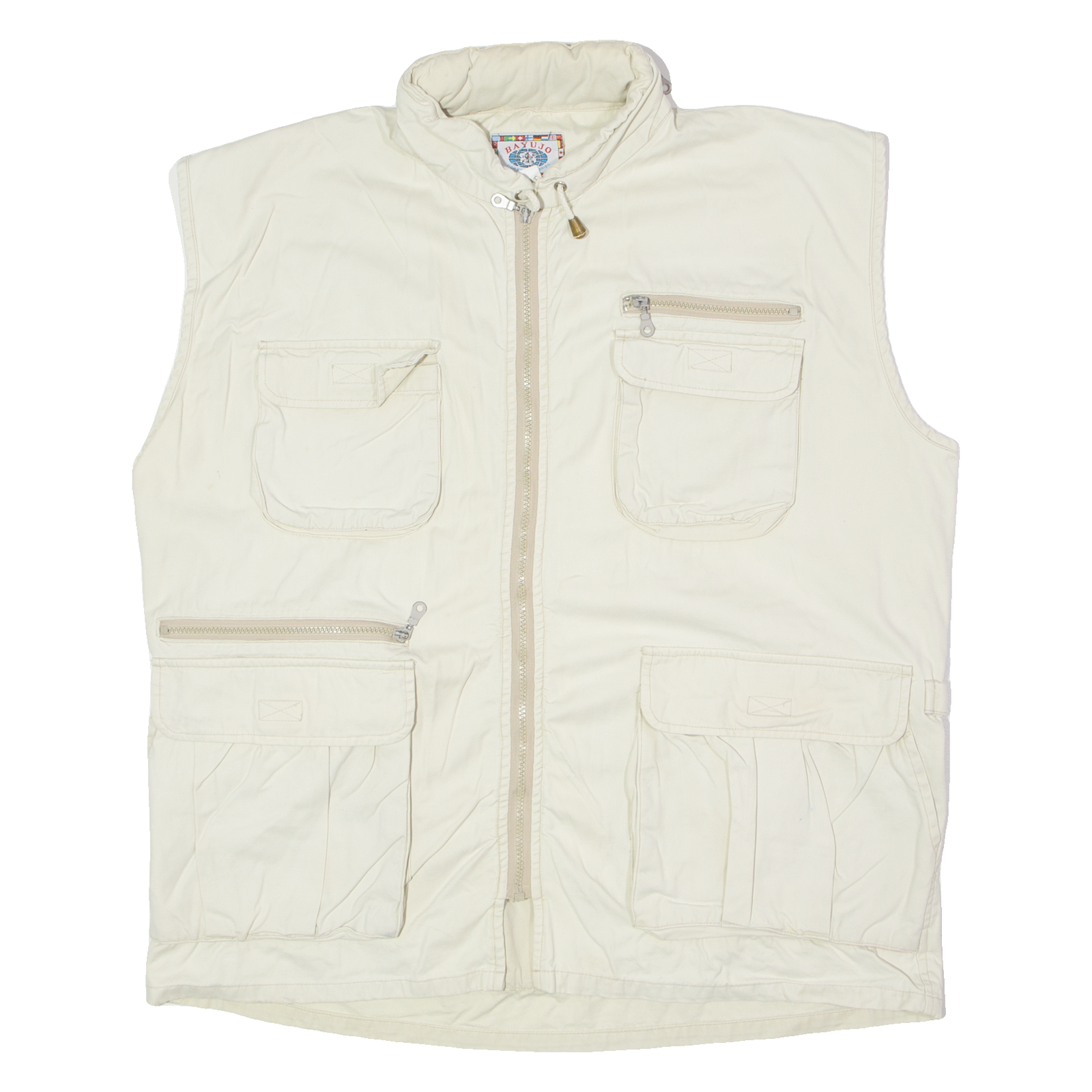 BAYUJO Utility Mens Gilet Cream Canvas 90s Hooded XL