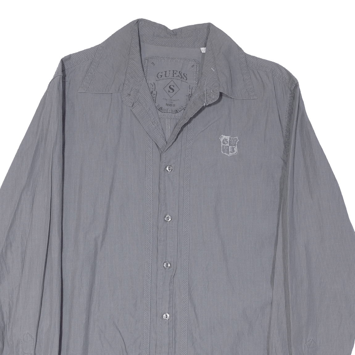 GUESS Mens Plain Shirt Grey 90s Striped Long Sleeve S