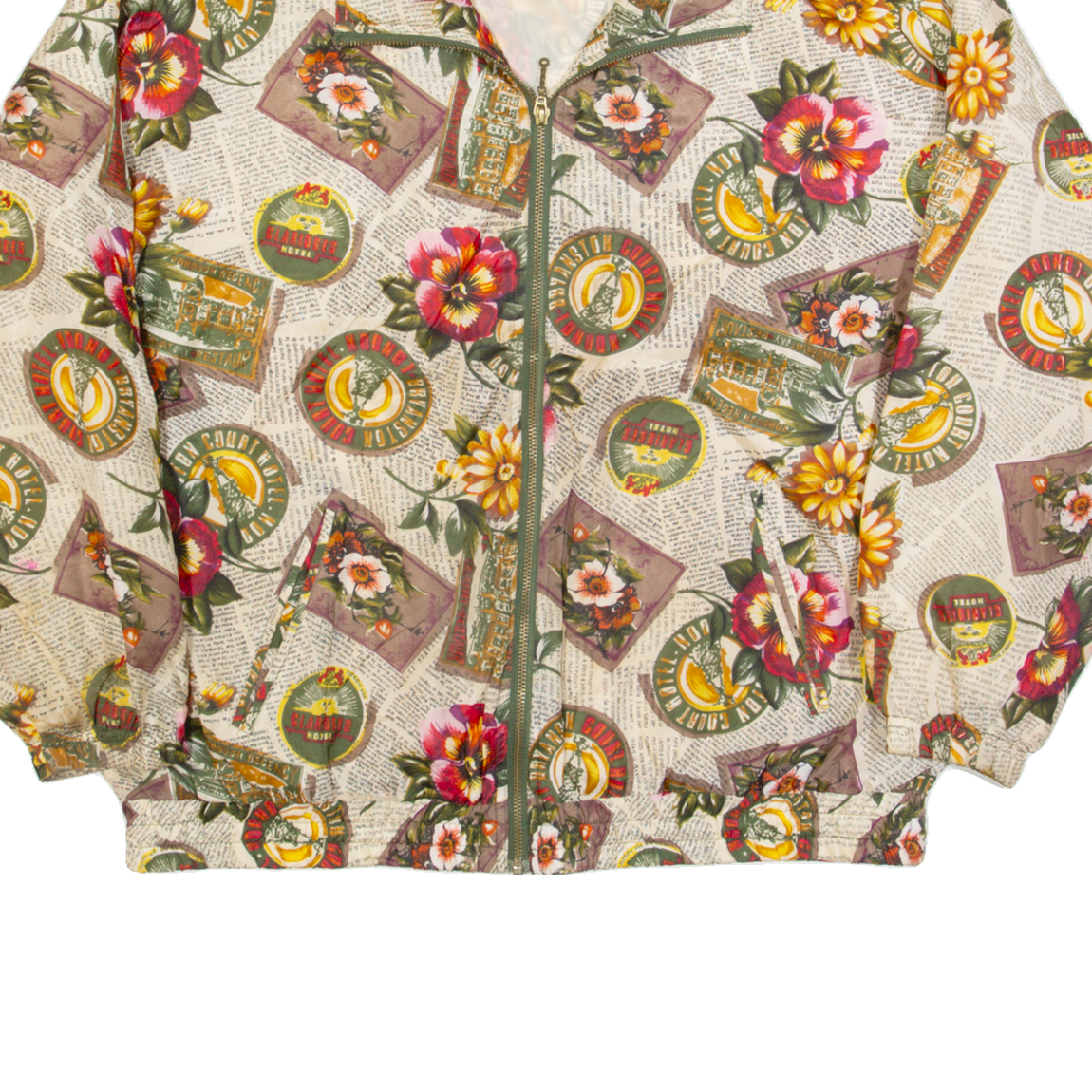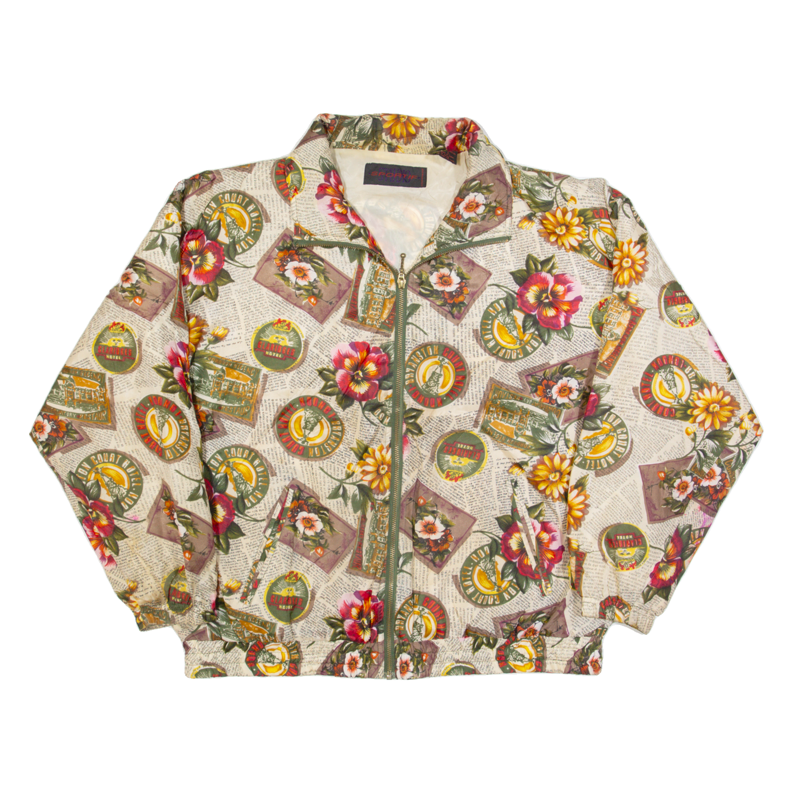 SPORTIF Womens Shell Jacket Cream 90s Crazy Pattern L