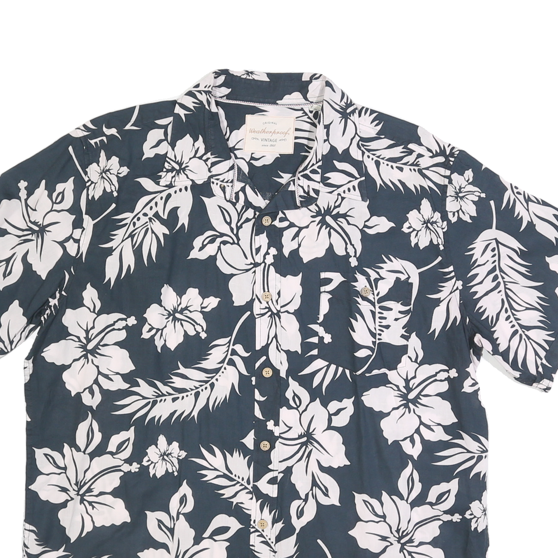 WEATHERPROOF Mens Blue & White Floral Cotton Shirt XL Summer Casual Short Sleeve