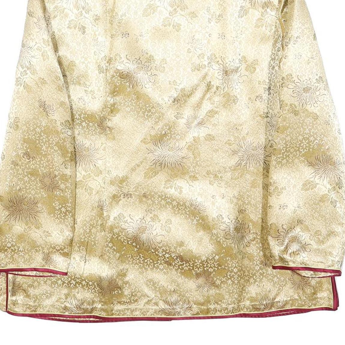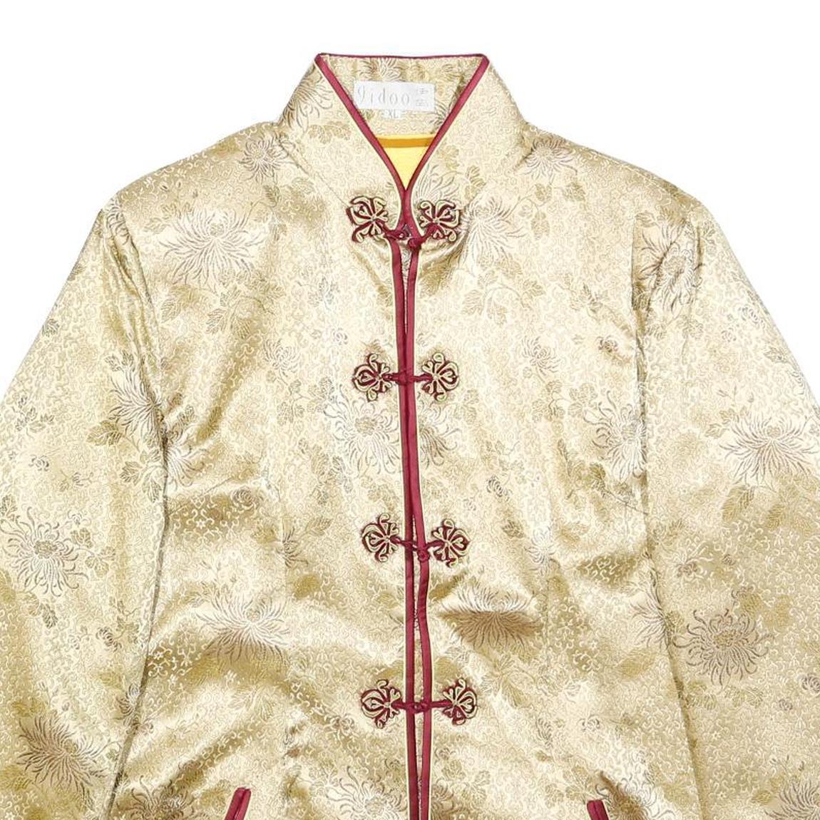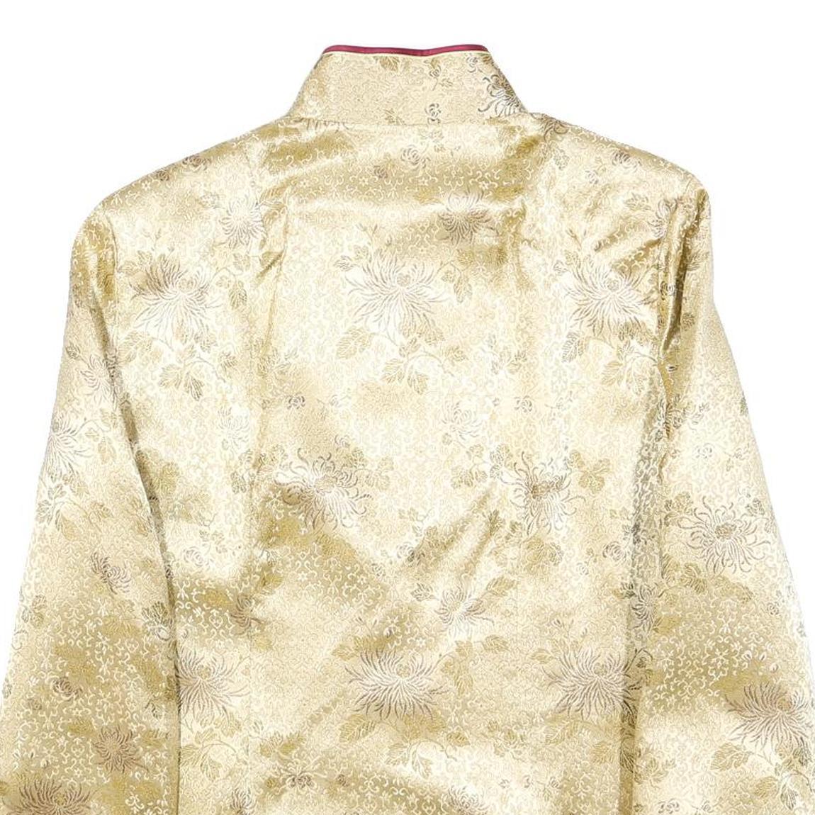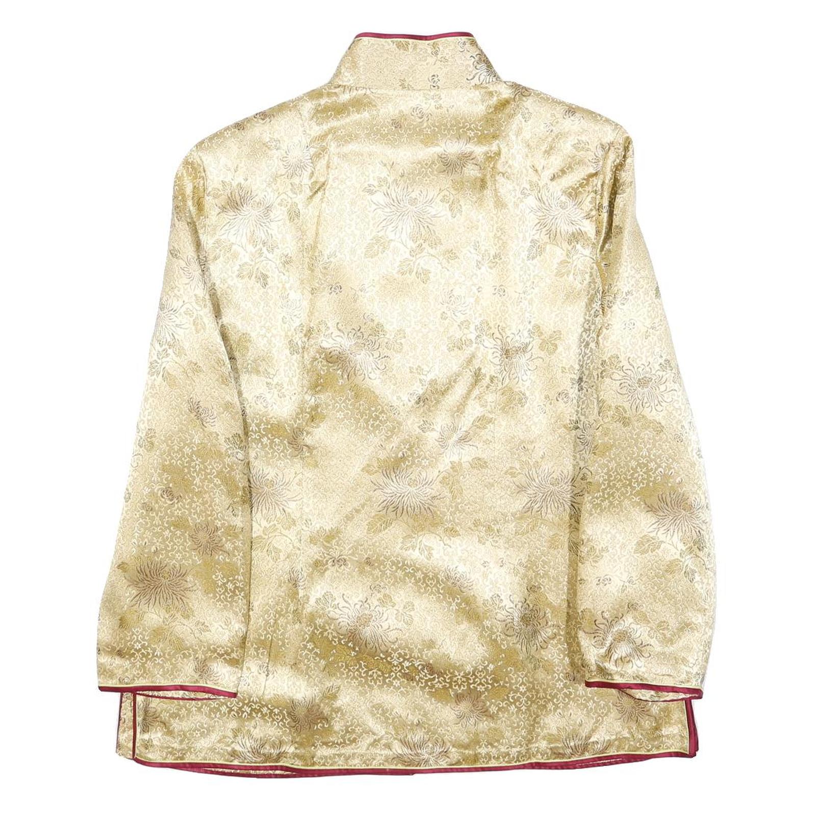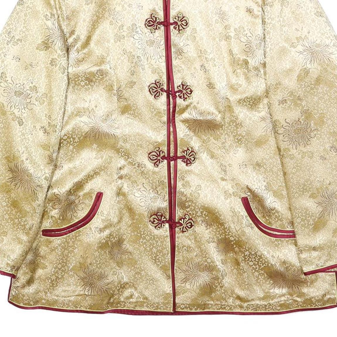 Womens Beige & Maroon Satin Button Jacket XL Polyester Blend Floral Elegant