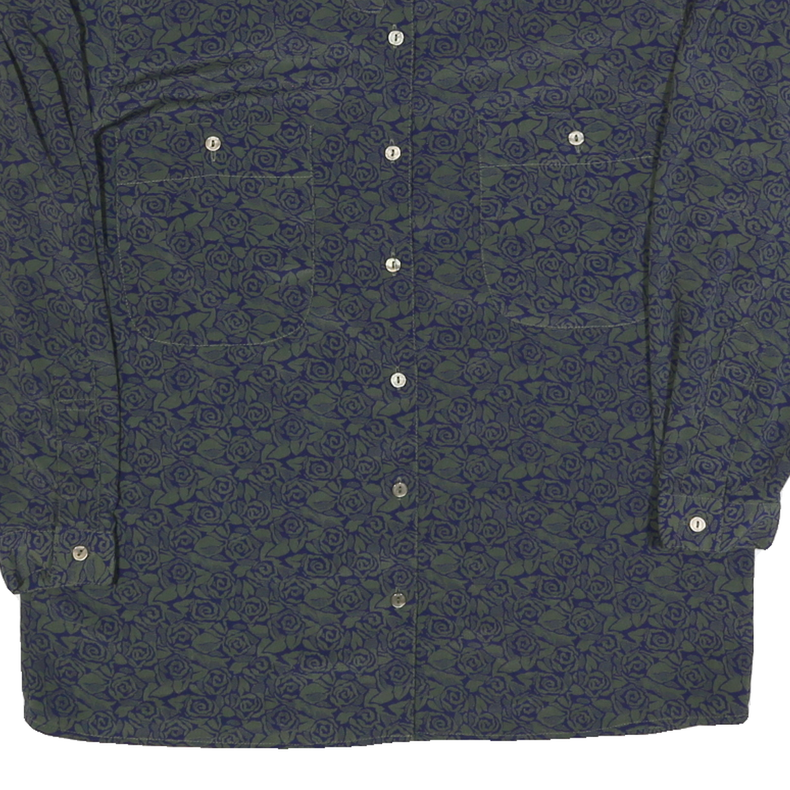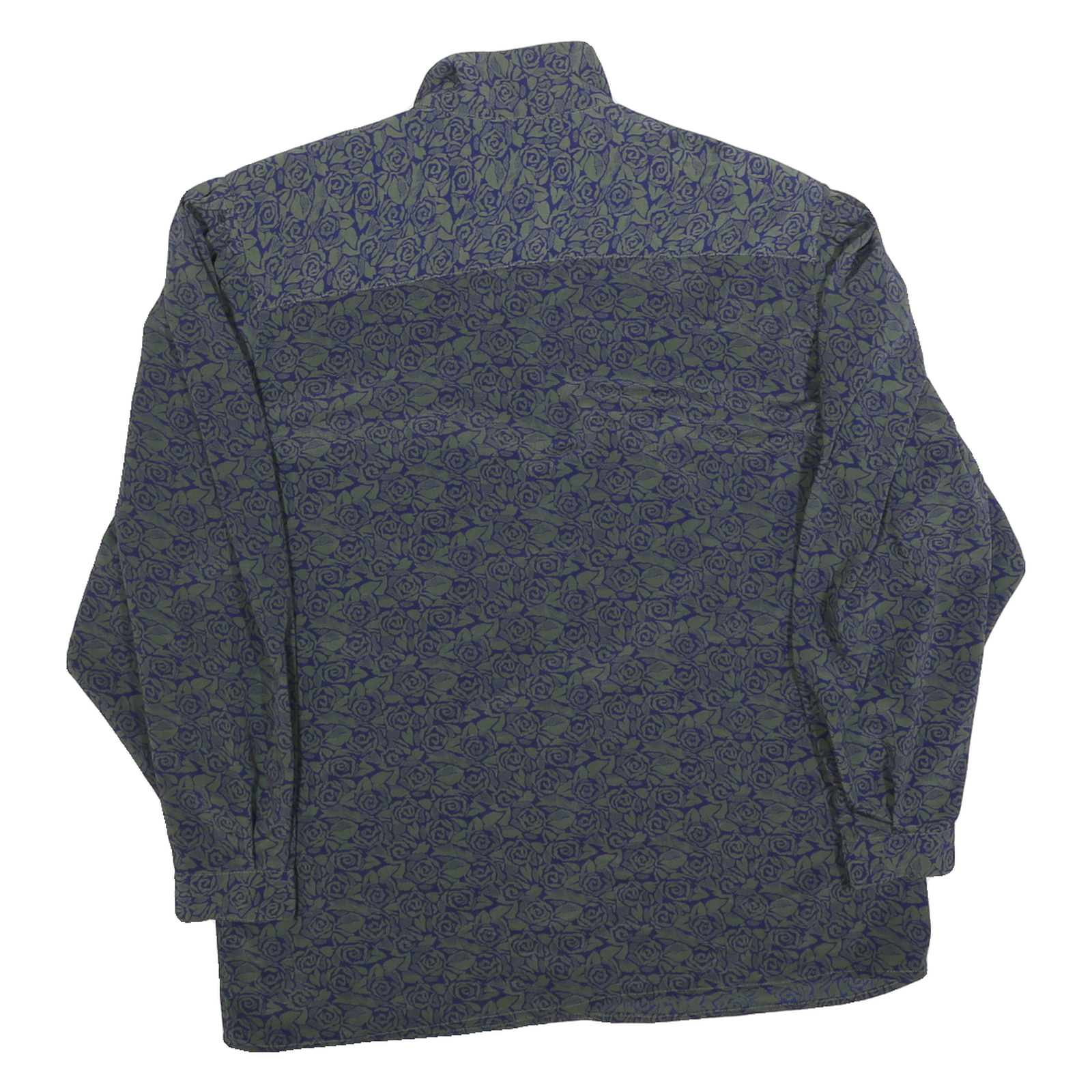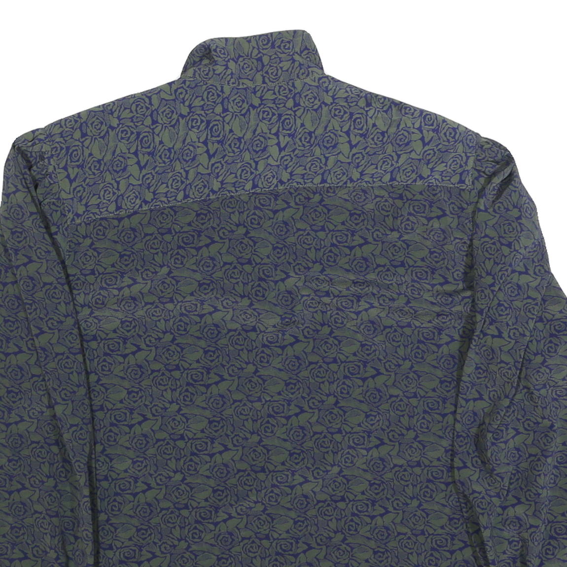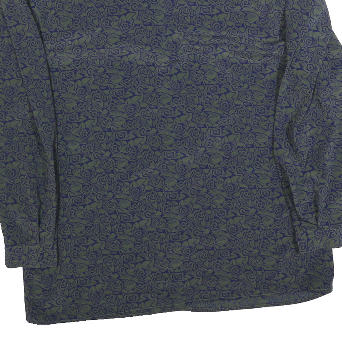 Womens Blue & Green Printed Shirt Long Sleeve Collared Polyester M Rose Pattern