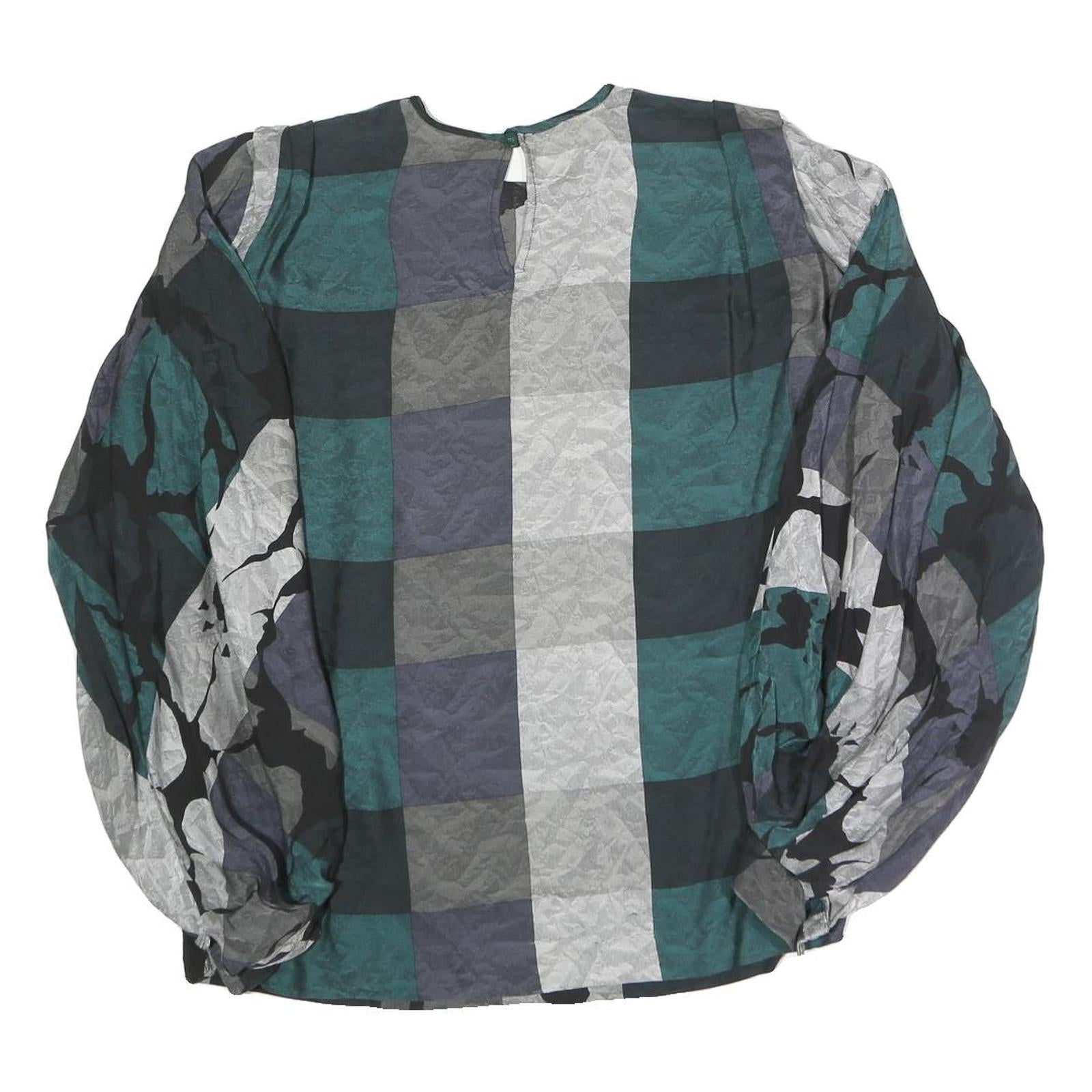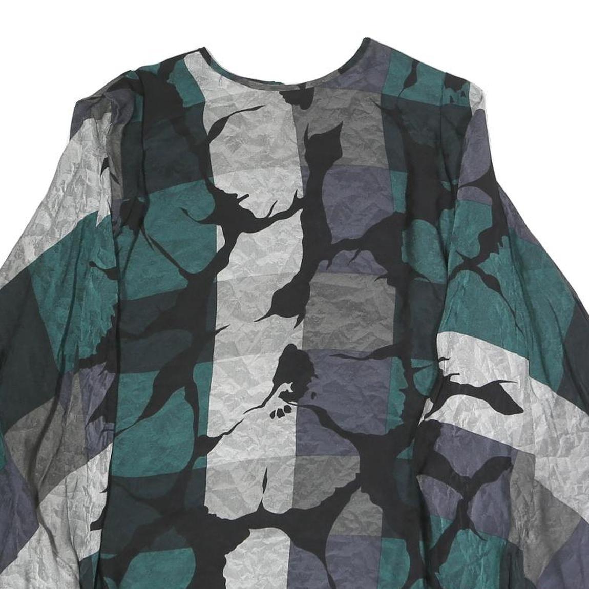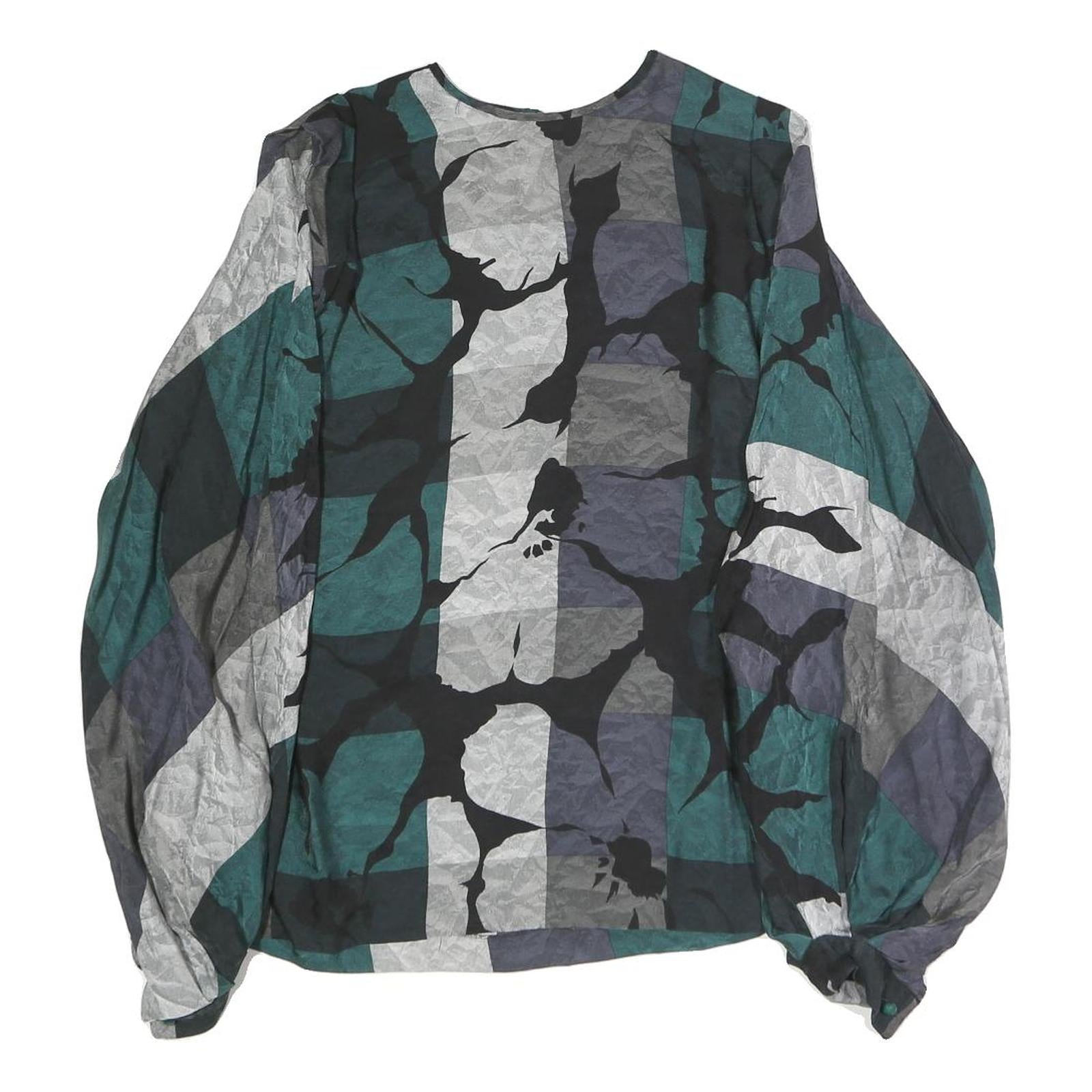 Womens Green Grey Black Abstract Print Top Long Sleeve Round Neck L Polyester