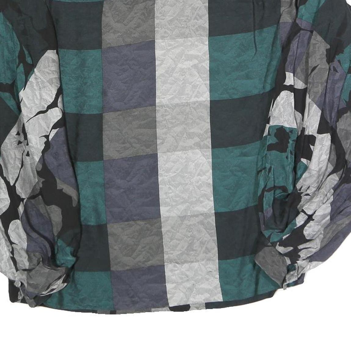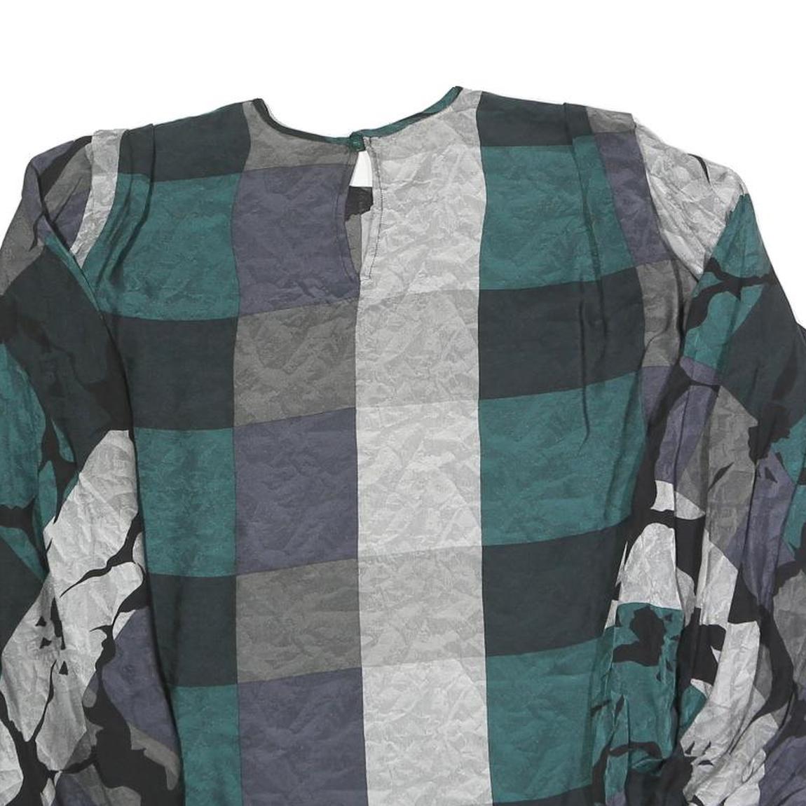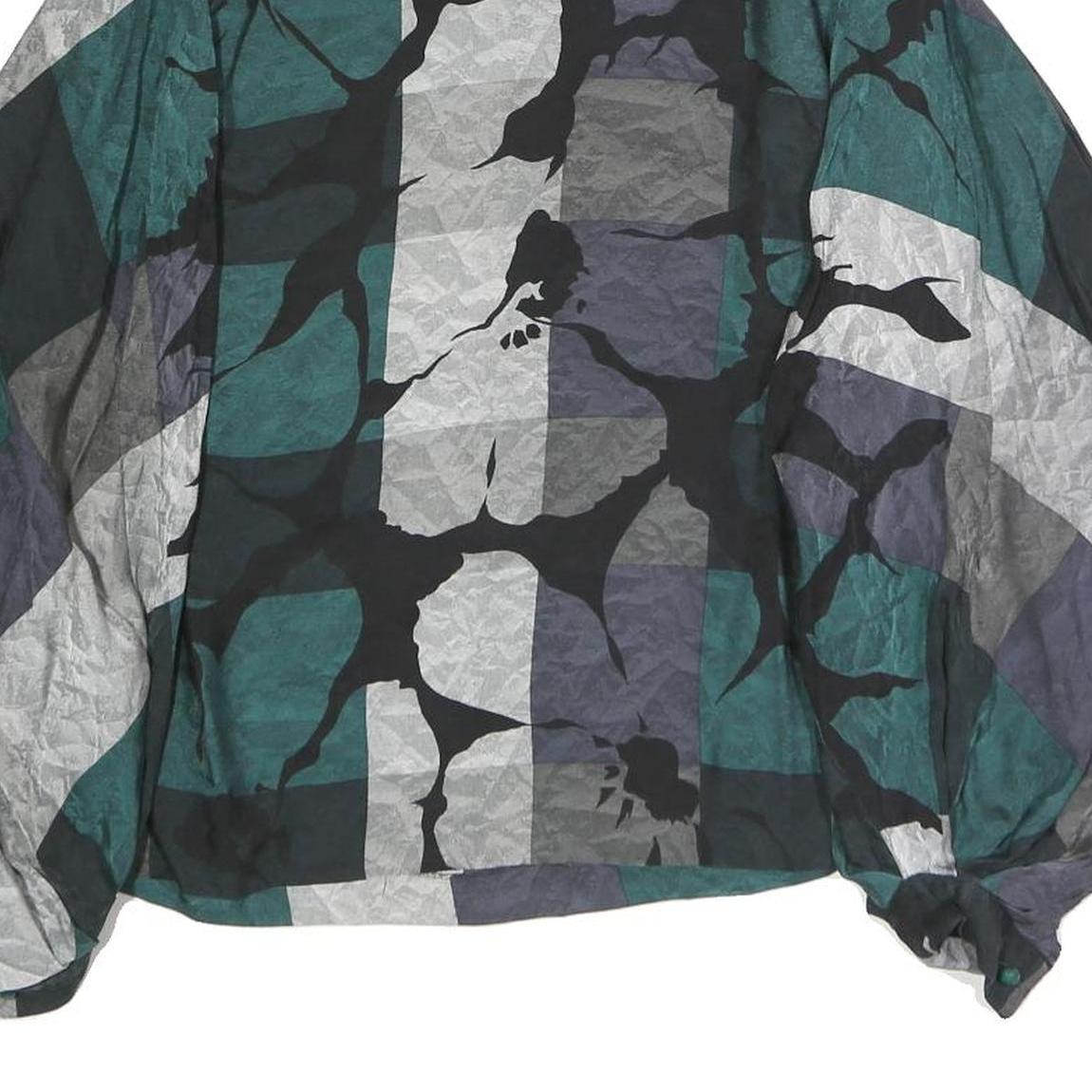 Womens Green Grey Black Abstract Print Top Long Sleeve Round Neck L Polyester