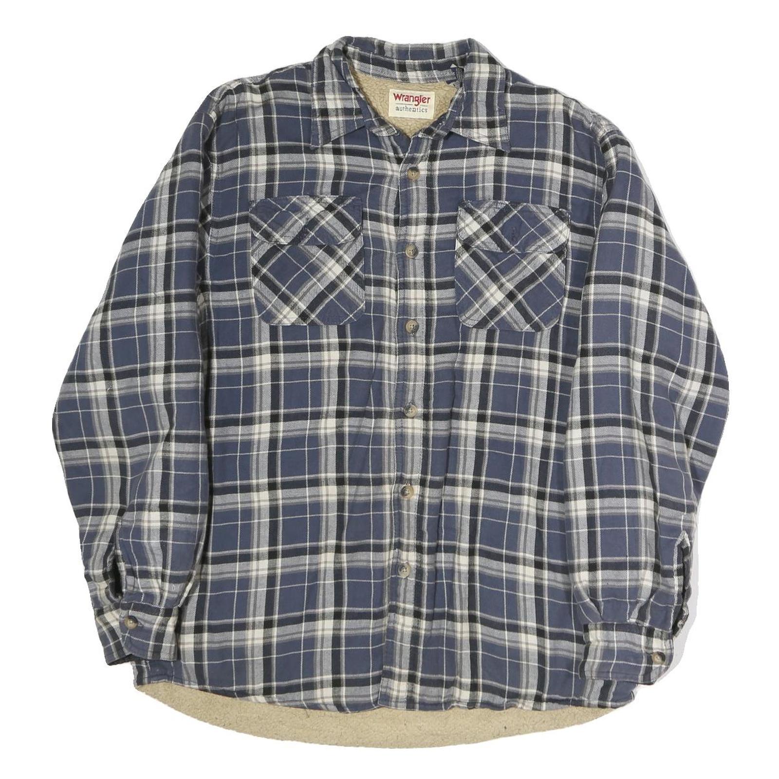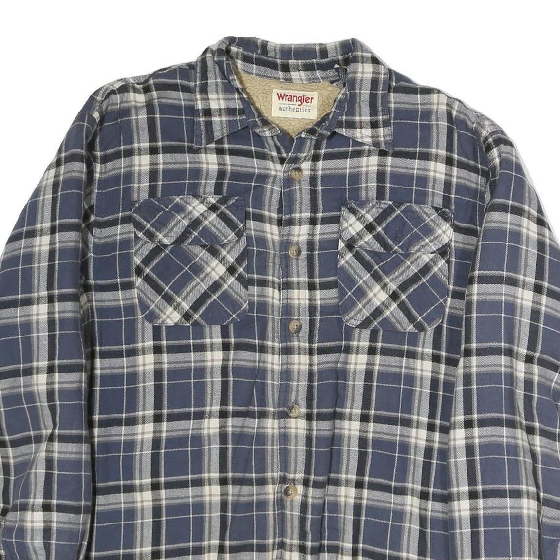 WRANGLER Mens Blue & White Plaid Shirt L Cotton Long Sleeve Casual Everyday Wear