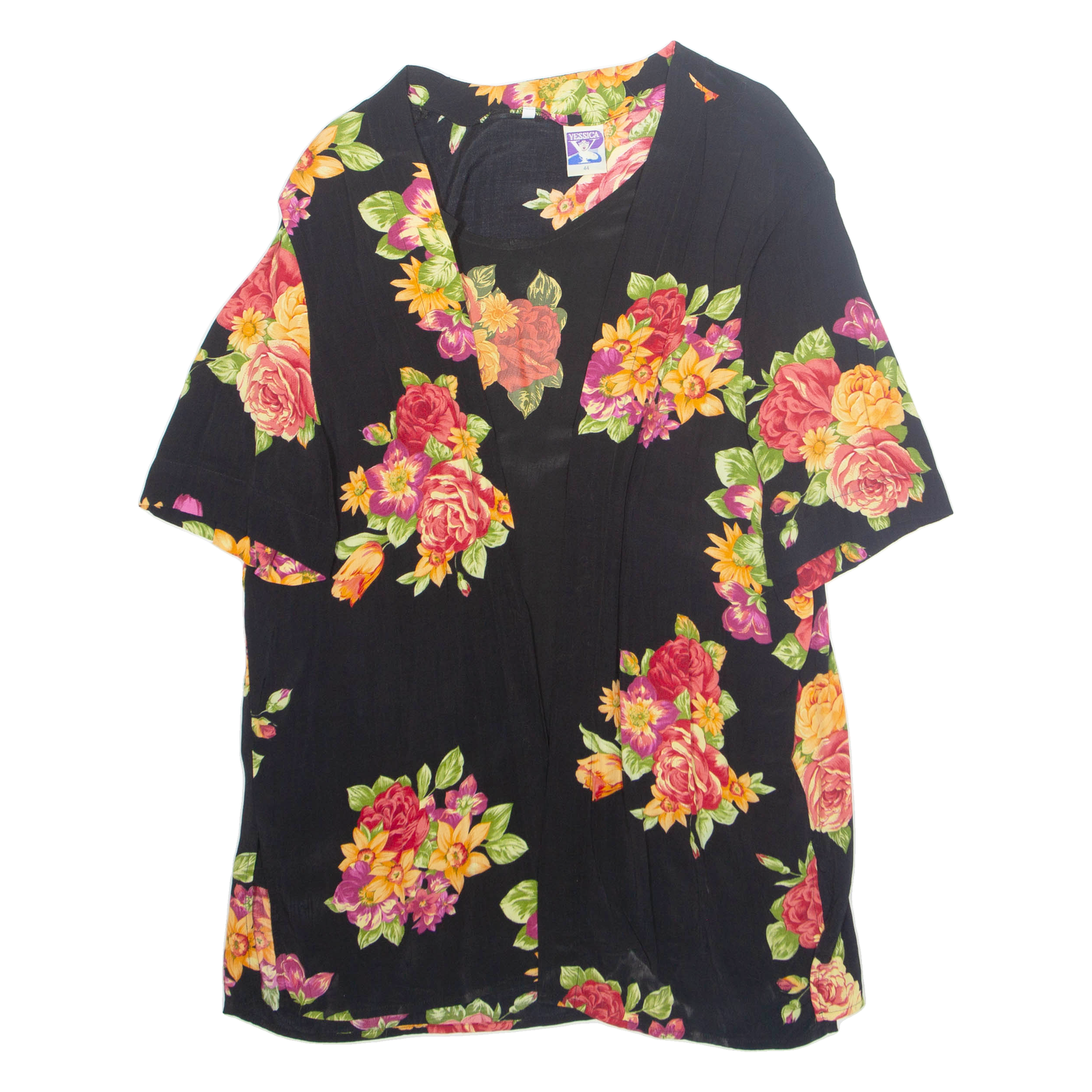 YESSICA Womens Printed Top Black Floral XL