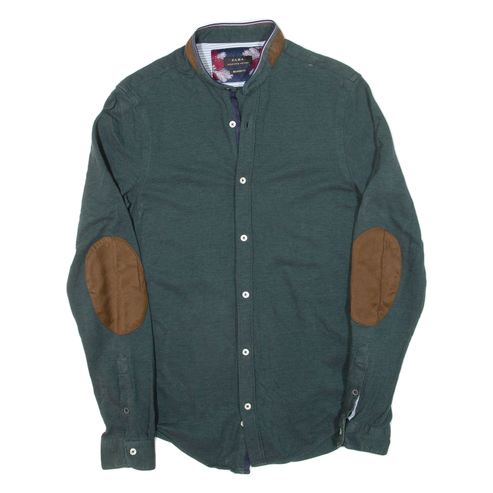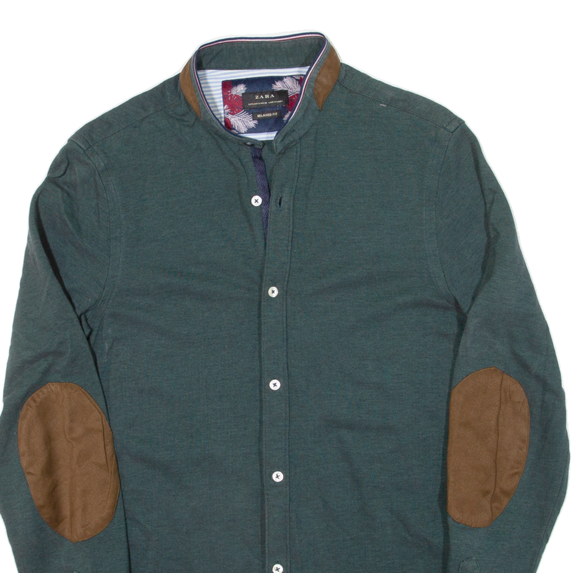 ZARA MEN Relaxed Fit Mens Plain Shirt Green Long Sleeve S